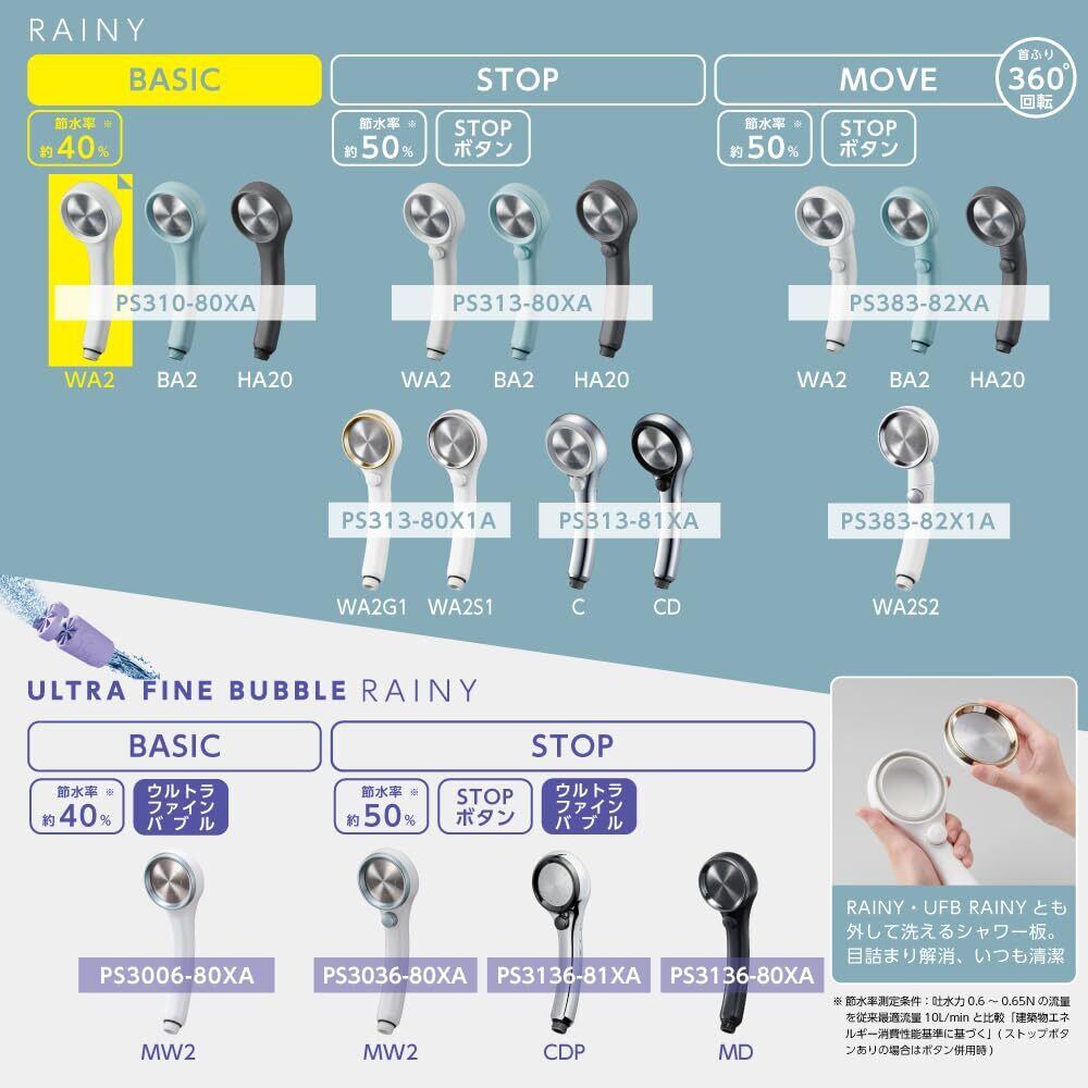 SANEI(サンエイ) シャワーヘッド レイニーベーシック 節水率40% 極細水流 勢いアップ ステンレスシャワー板 ホワイト 日本製 PS310-80XA-WA2
