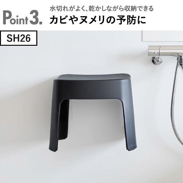山崎実業 風呂イスシリーズから洗いやすいマグネットタイプのお風呂椅子が登場。お風呂椅子の内側は凸凹の少ない構造になっており、汚れが溜まりにくく、サッと洗えてお手入れが簡単にできます。側面に内蔵されている強力なマグネットで、使用後は浴室壁面にそのまま貼り付けて収納できるので便利です。お風呂椅子を浮かせて収納することで、浴室がすっきり広々とした印象に。水切れもよく、乾かしながら収納できるので、カビやヌメリの予防になるのも嬉しいポイントです。お風呂掃除も簡単にでき、いつでも清潔なお風呂場を保つことができます。座面の高さはSH26とSH32の2タイプ。座面は滑らかなカーブで座り心地もよく、頑丈なつくりで安心して座ることができます。お風呂椅子は軽量なプラスチック製なので、持ち運びもスムーズに行えます。山崎実業 風呂イスシリーズの湯おけ、手おけを一緒に揃えて、統一感のある空間を演出するのもおすすめです。単品・2点セット・3点セットからお好みの組み合わせをお選びください。山崎実業 風呂イスシリーズで快適なバスタイムを。