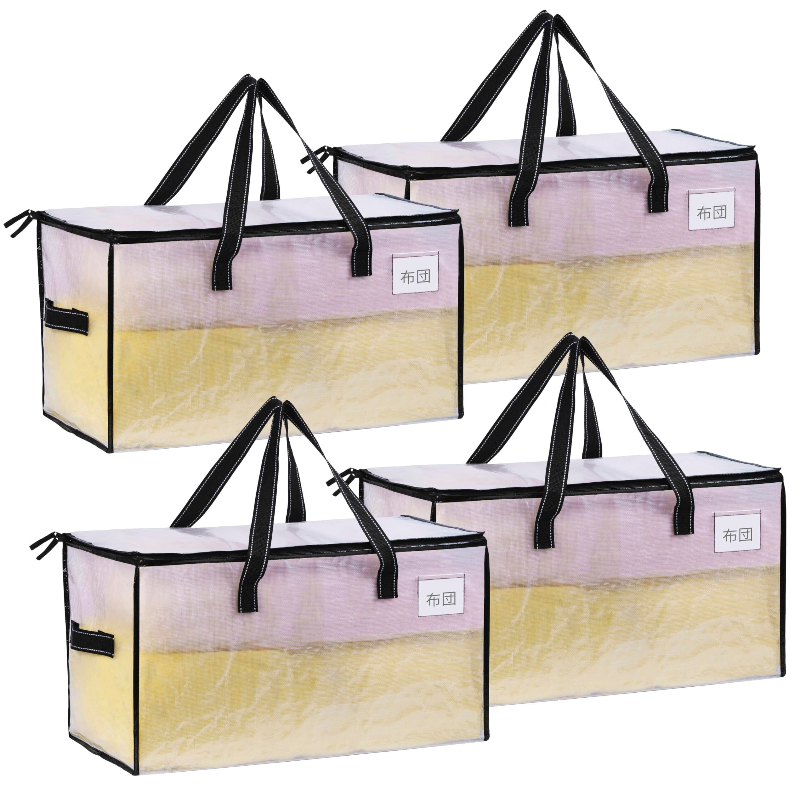 VENO 布団収納袋 衣装ケース 大容量 引越しバッグ 引越しダンボールの代替 高耐久 耐水 中身が見える 持ち手付き 折りたたみ可能 衣装ケース 布団袋 押入れ収納 引っ越し キャンプ 旅行 (クリア 4枚セット)