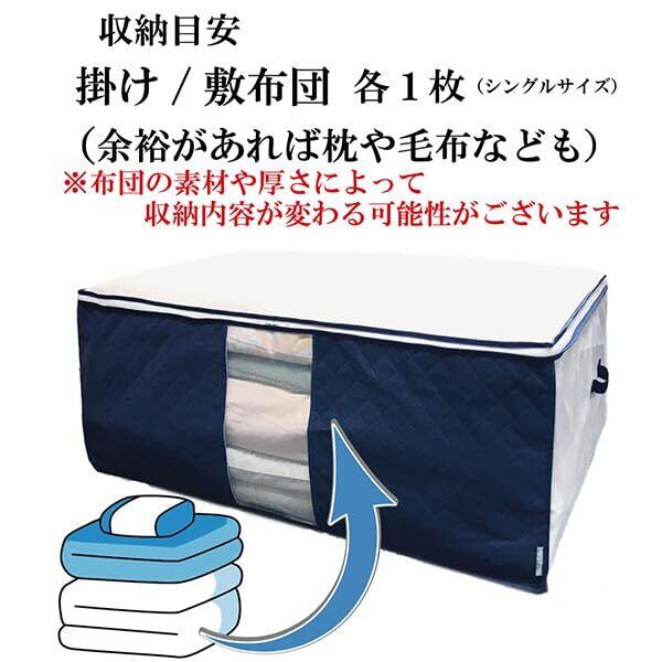 【透明窓・大きなファスナー・両サイド持ち手付】透明窓付きで収納した寝具が見えて取り出し時にも便利。大きく開く上部のファスナーで出し入れカンタン。両サイド持ち手付で移動や持ち運びも。