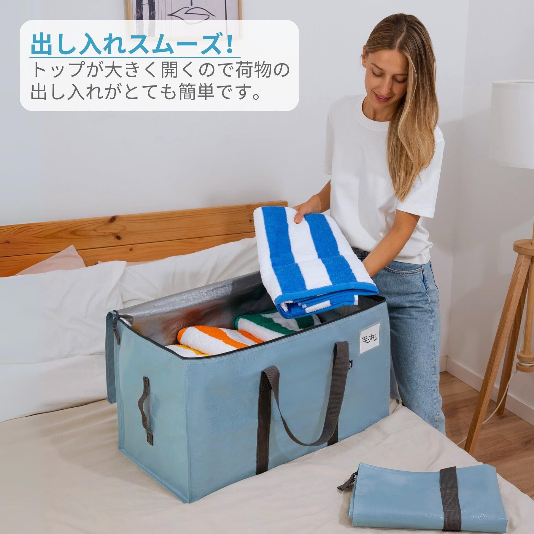 VENO 布団収納袋 頑丈な改良素材 引越し用ダンボール代替 三面ファスナー大きく開閉 折り畳み式 衣装ケース 収納ケース 耐水 耐久 布団収納 衣類収納 衣替え 旅行 キャンプ (ライトブルー 4枚セット)