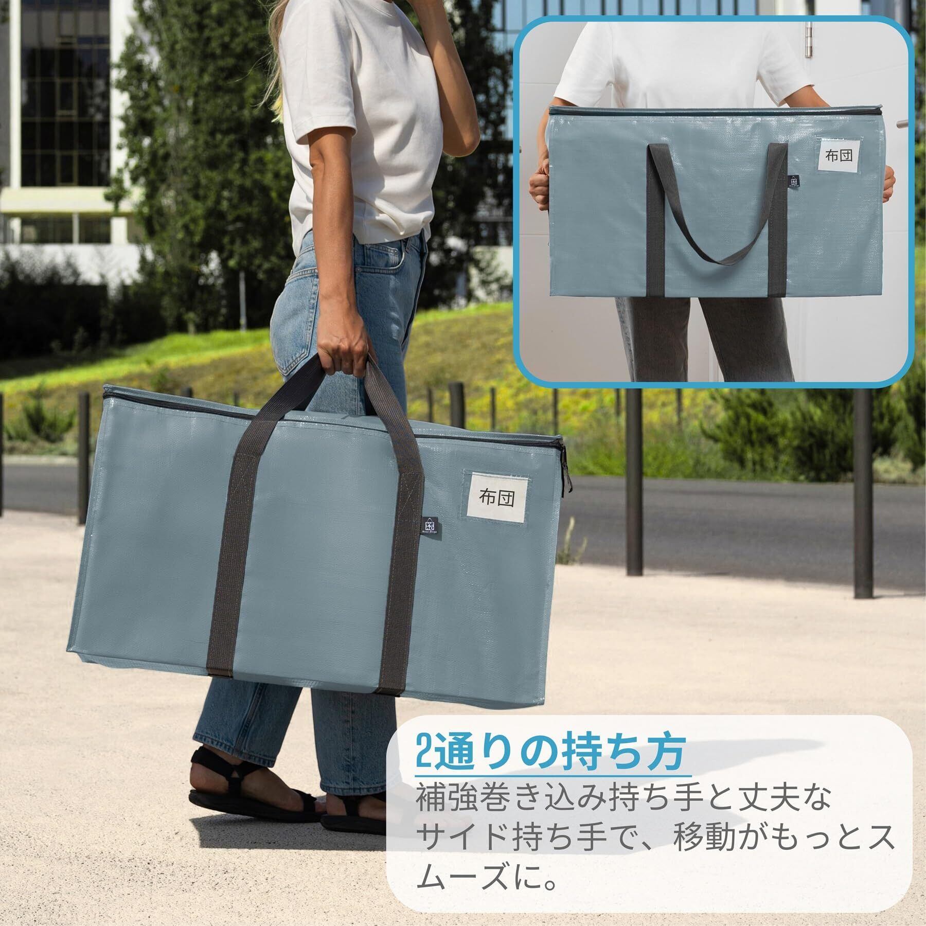 【耐水性・頑丈なアップグレード素材】耐久性に優れた高品質PE素材を採用し、撥水性も備えているため、湿気から中身を守ります。バッグ全体を囲むように設計された広くて厚みのある持ち手は、縫い目の強度を高め、重い荷物をしっかり支えます。収納ケースとして繰り返しの使用にも適した構造です。