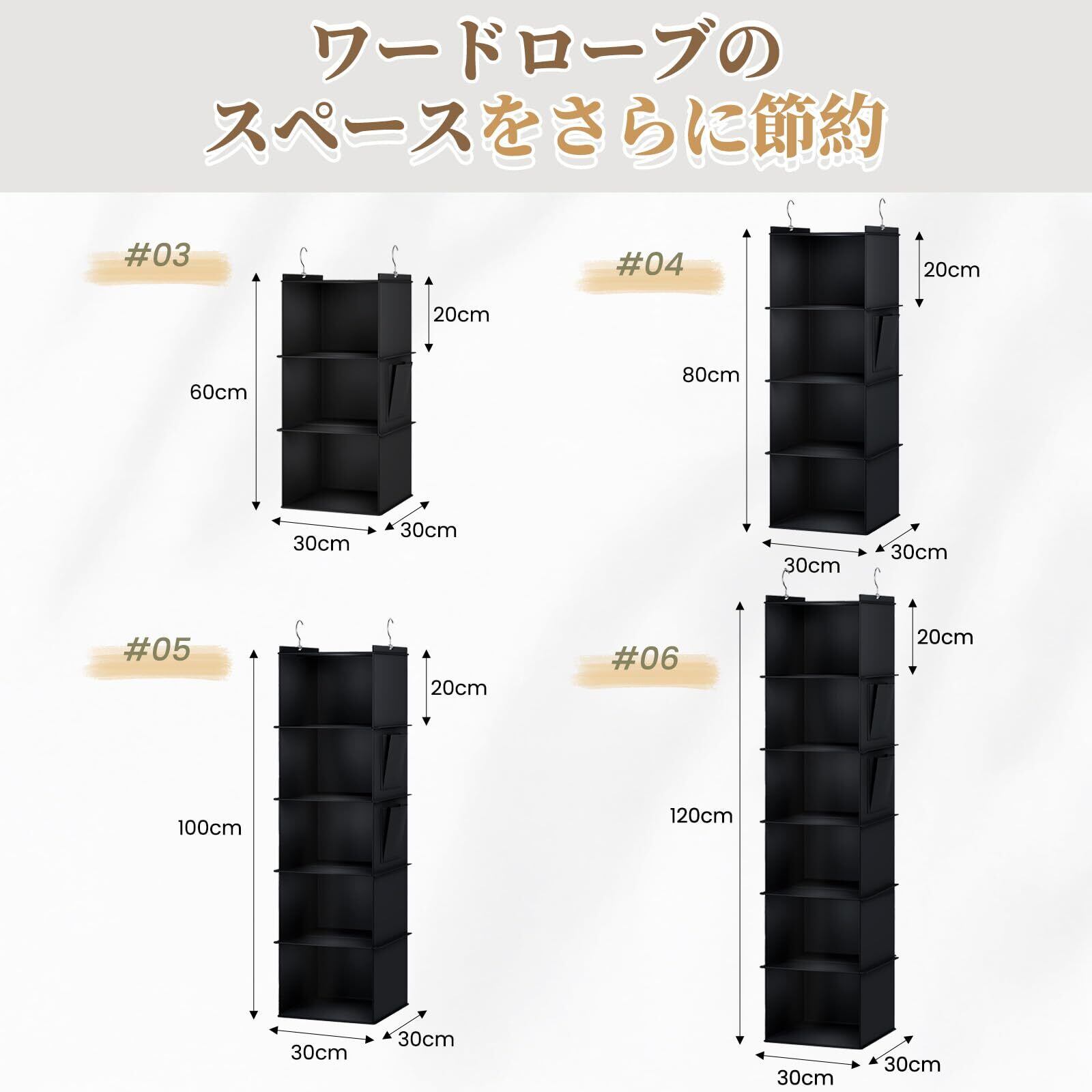 YOUDENOVA 吊り下げ収納 クローゼット 4段 通気繊維素材 帽子 衣類収納 不織布 衣類ラック 使いやすい 防湿防カビ 折りたたみ ポケット 省スペース ブラック 30x30x80cm