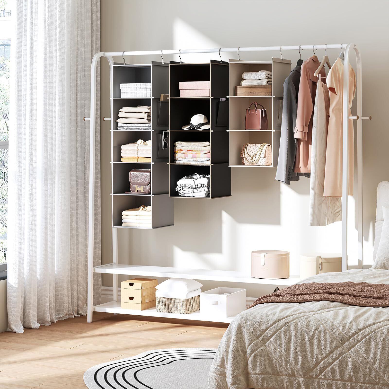 【吊り下げ・省スペース】吊り下げ式の衣類ラックで、クローゼットや部屋の収納スペースを有効活用できます。洋服だけだはなく、ぬいぐるみやタオル、カバンや帽子などのスッキリ整理整頓グッズです。