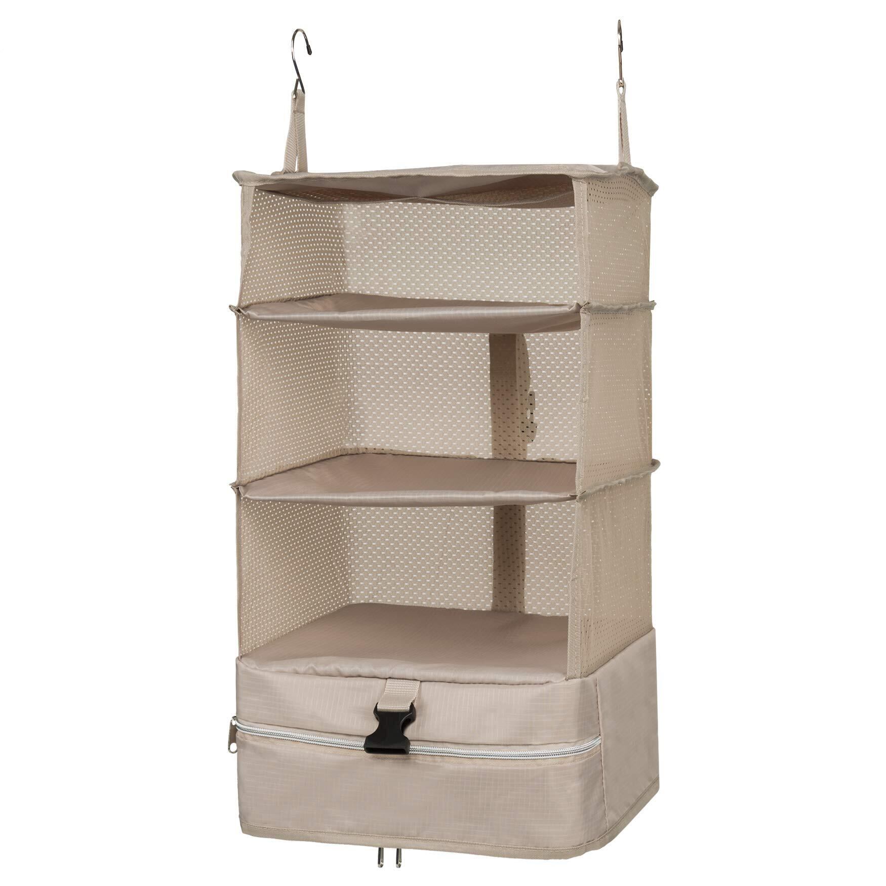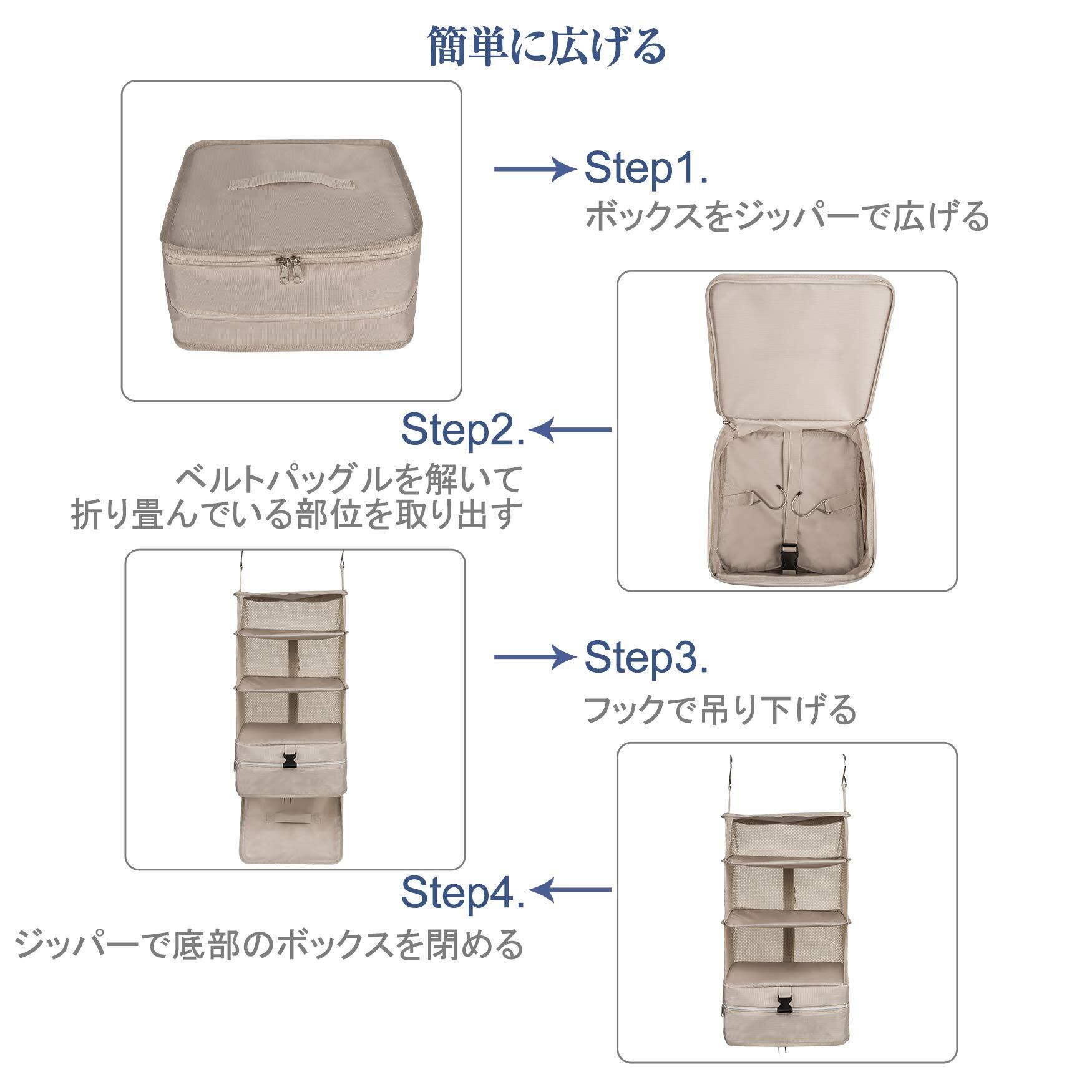 クローゼット吊り下げ収納 インナーバッグ 衣類ラック 収納 旅行 出張 クローゼット 収納ボックス 吊り下げ 省スペース 大容量 衣装ケース 4段 取付簡単 折り畳み式 (ベージュ, Large)