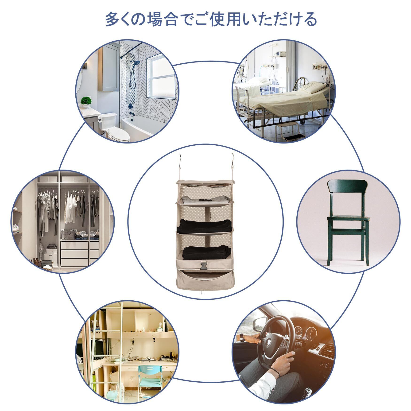 【幅広い適用】取り付けも出し入れも簡単で、見た目もシンプルなので、家のクローゼットだけではなく、旅行先のホテル、学生寮、車内やジムなどの場合も有効活用できます。