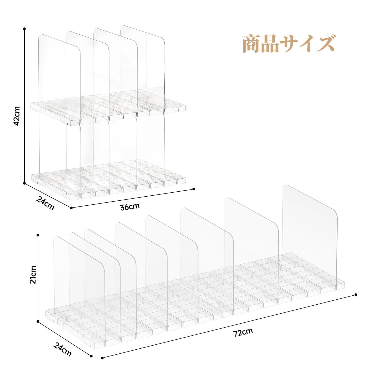 PAVSTINE バッグ収納スタンド 2個セット 間隔調節可能 4仕切り 台座連結・積み重ね可能 簡単組み立て 透明 クローゼット カバン収納 約幅36x奥行24x高さ21cm クリア