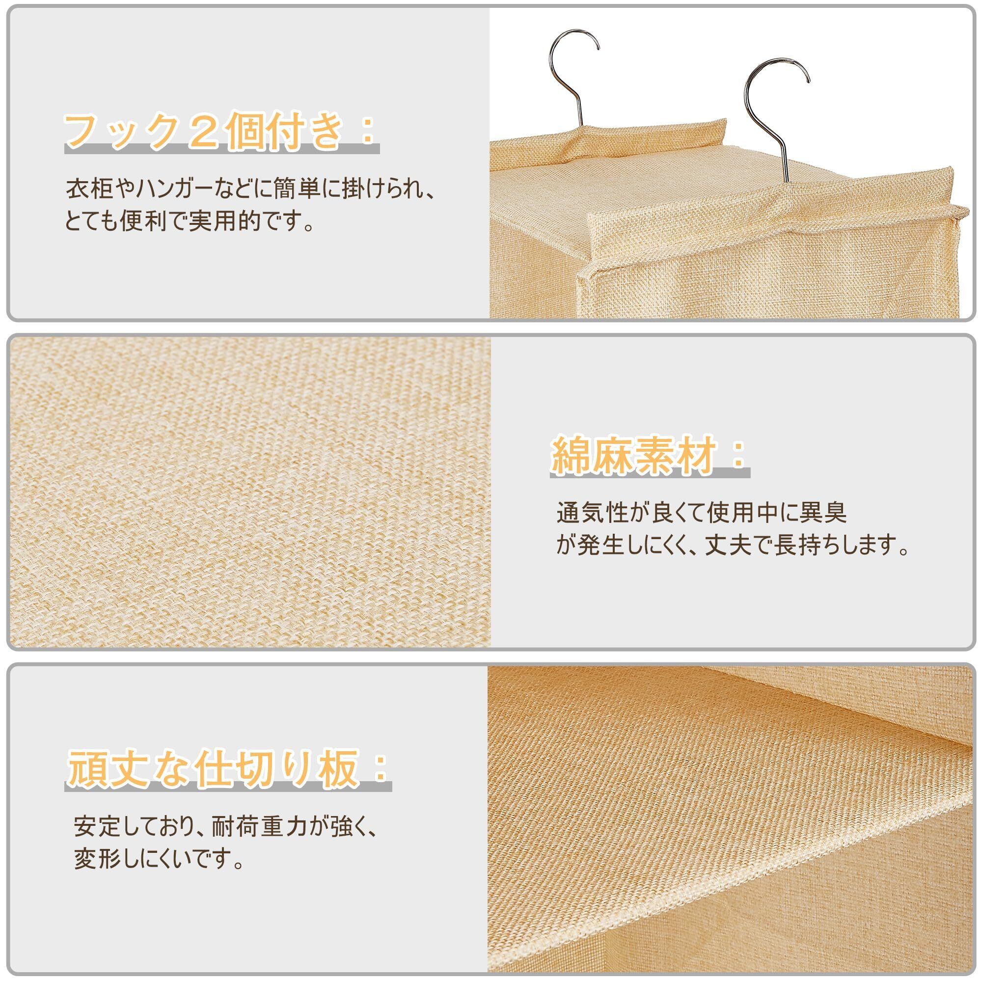 ◆通気性と耐久性に優れた棉麻素材を使用した吊り下げ式収納ラック。