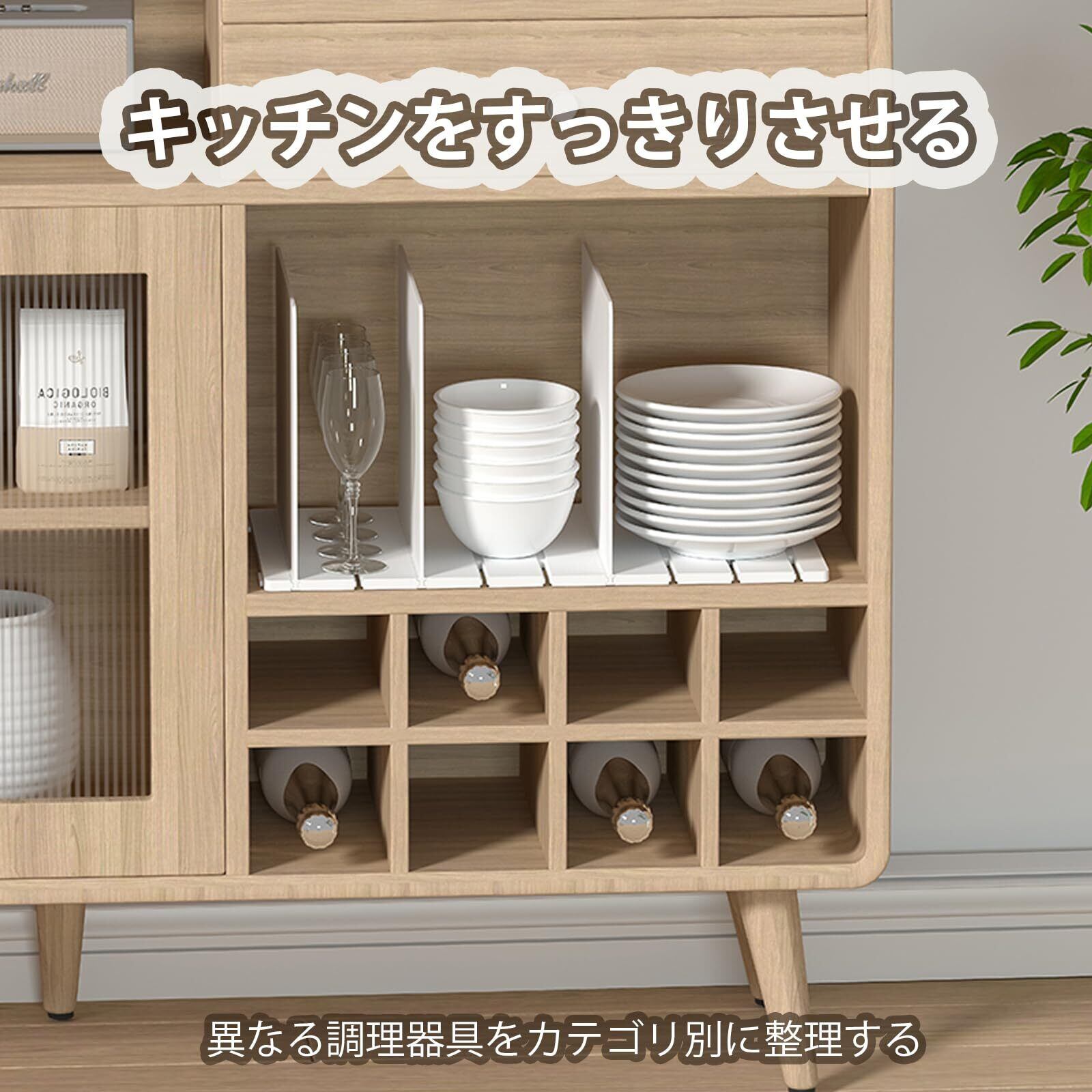 3. ️【キッチン収納にも最適】 食器、調理器具、鍋などを分類して収納し、キャビネット内をすっきりと整理します。必要なものをすぐに見つけられ、調理がスムーズになります。