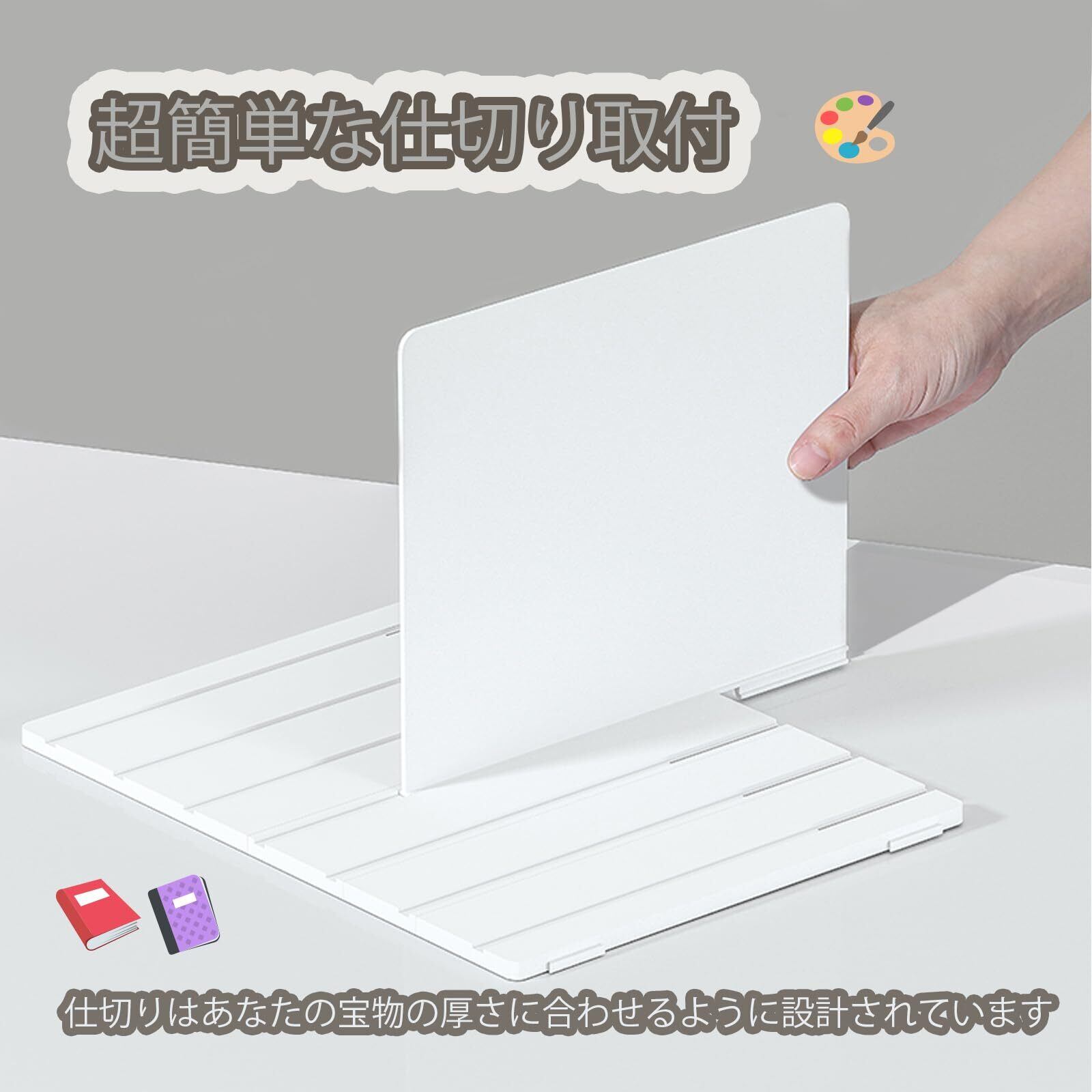 4. 【自由な組み合わせと調整が可能】 仕切り板は自由に取り外したり追加したりでき、収納スペースを自分のニーズに合わせてカスタマイズできます。複数セットを連結して使用することもでき、大きなスペースの整理にも対応します。
