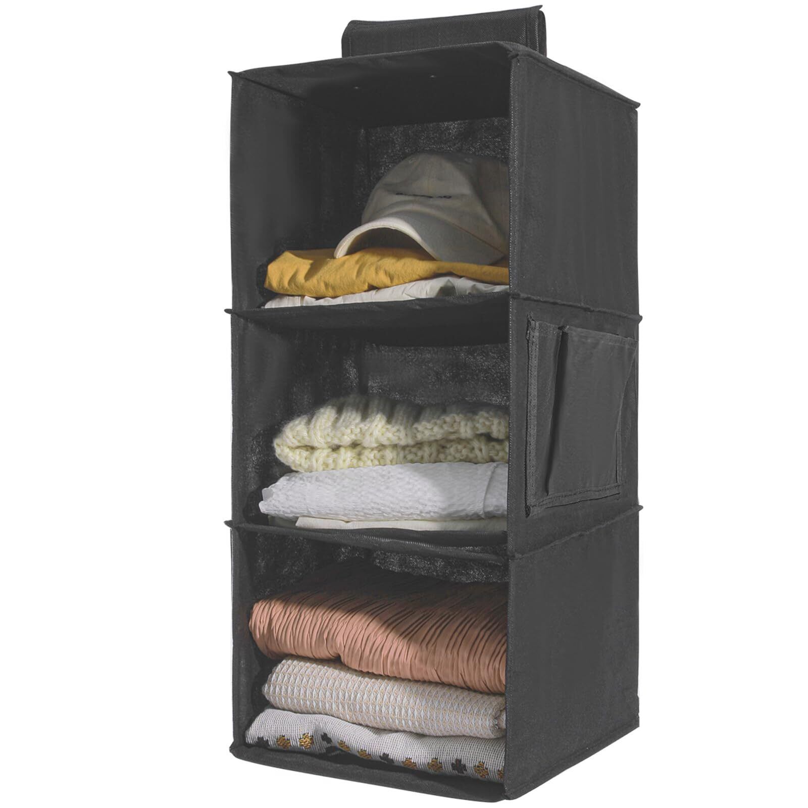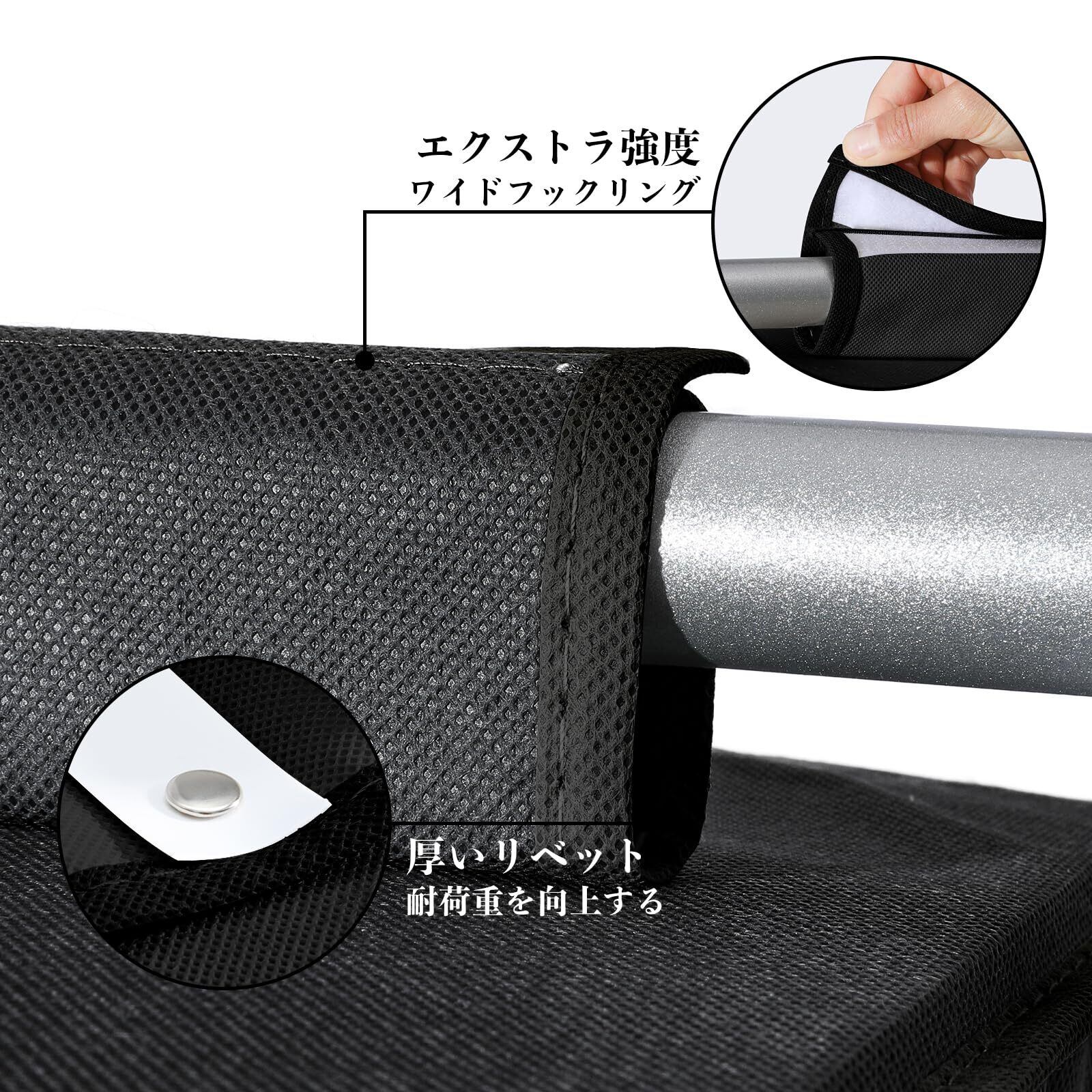 吊り下げ収納 3段 衣類ラック クローゼット 収納吊り下げ 大容量 帽子/鞄 収納ラック 取付簡単 折り畳み式 旅行/出張 30x30x60cm(ブラック、3段)
