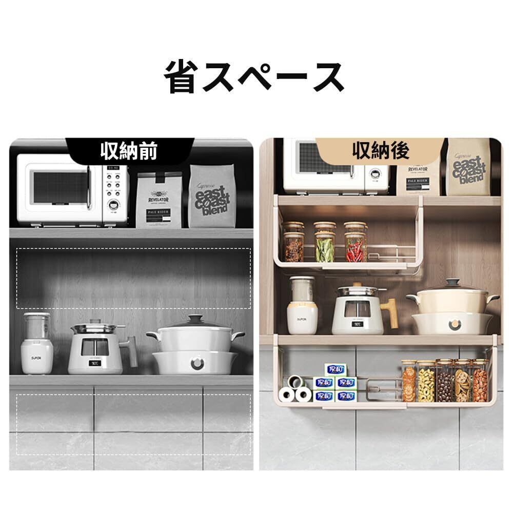 吊り下げ棚 伸縮式 差し込み式 戸棚下 吊り戸棚 収納ラック 吊り下げ ラック デスク下 戸棚下収納 吊戸棚 バスケット キッチン収納 掛け式 省スペース(ホワイト)
