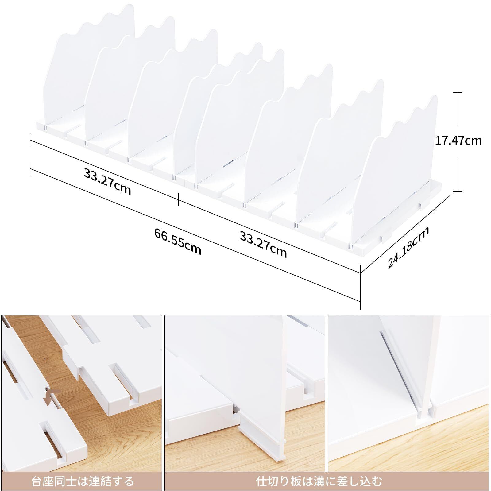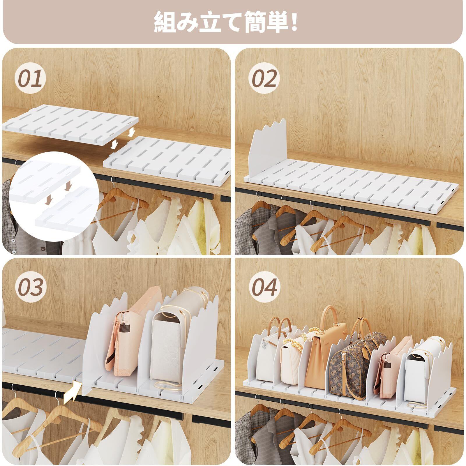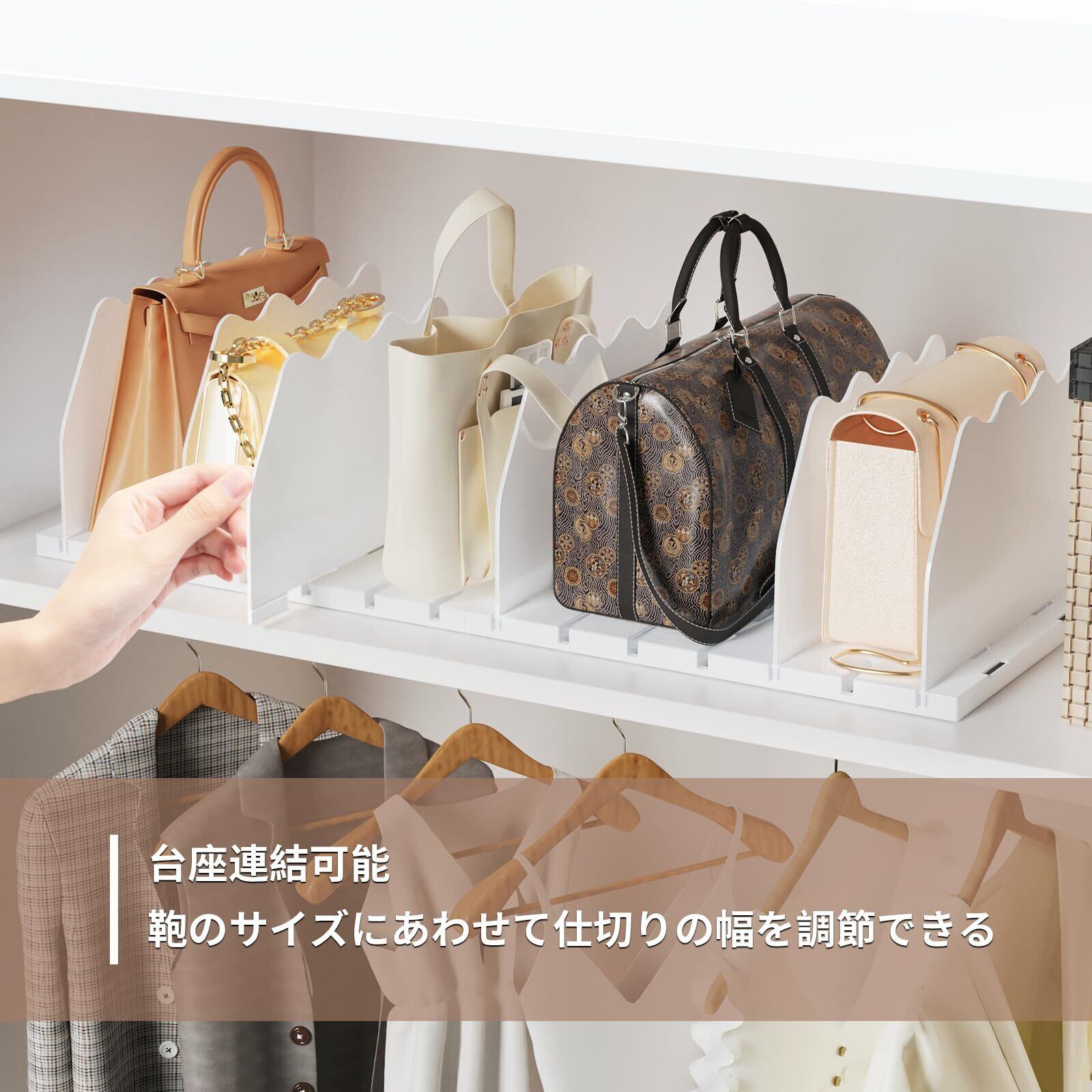 SPACEKEEPER バッグ収納スタンド 台座連結可能 2個セット W66XD24XH17cm クローゼット収納 調整できる仕切り幅 取り付け簡単 鞄 カバン 財布 書類 化粧品 ホワイト