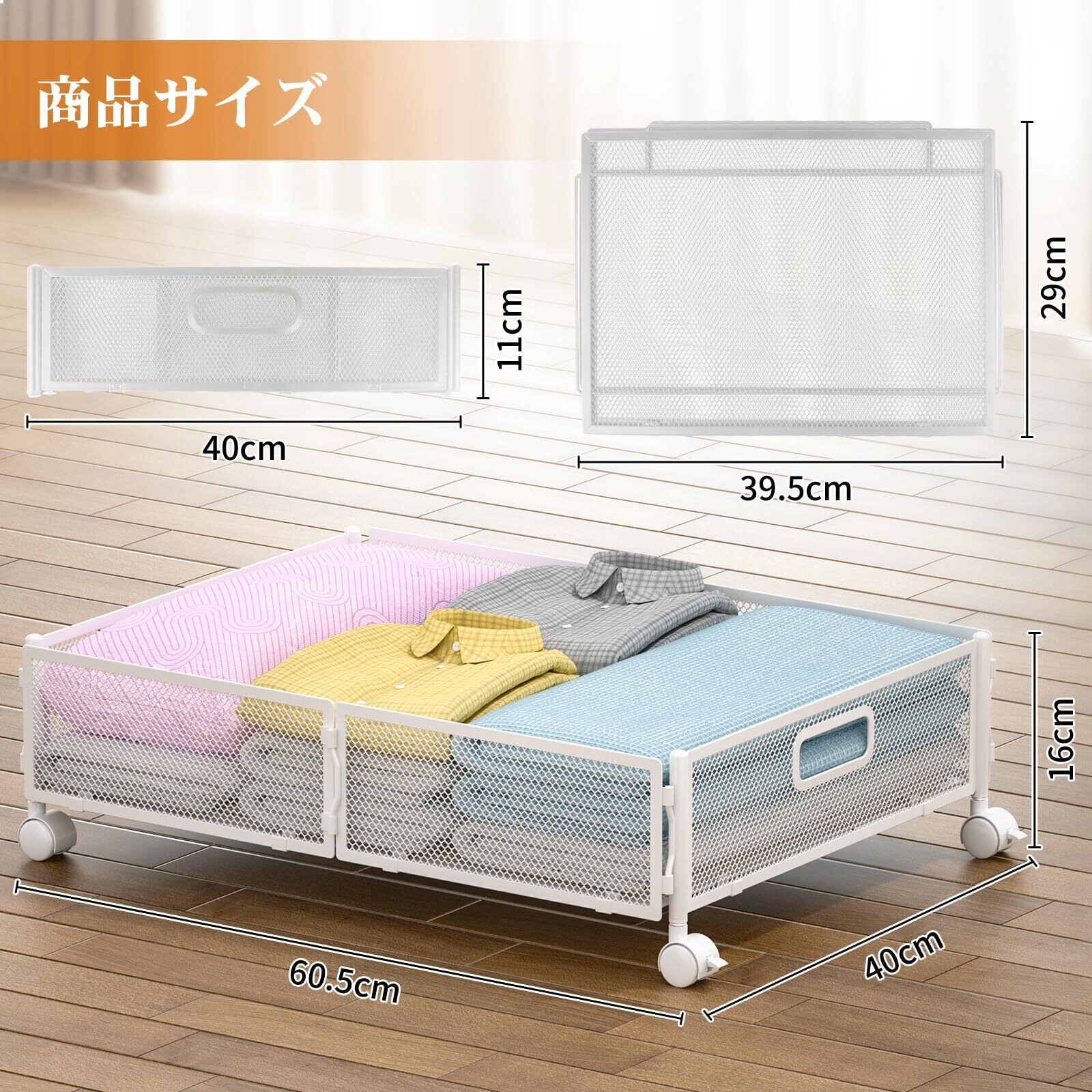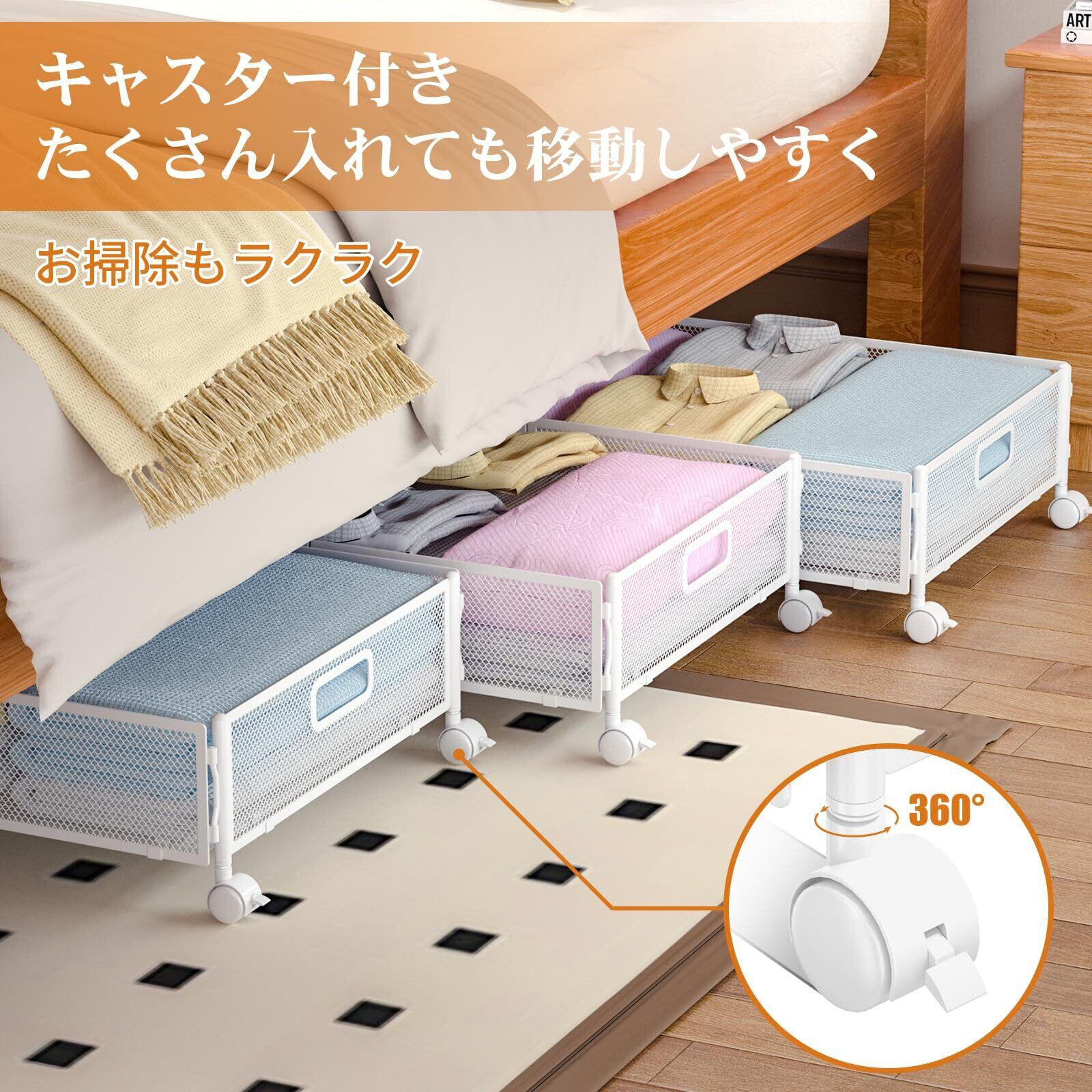 ベッド下収納 ベッド下収納 キャスター付き 服収納ボックス 衣類収納 折り畳み 取り付け簡単 大容量 衣替え 布団 毛布 ベッド下物入れ 省スペース 押したり引いたりできる (ホワイト, 1点セット)