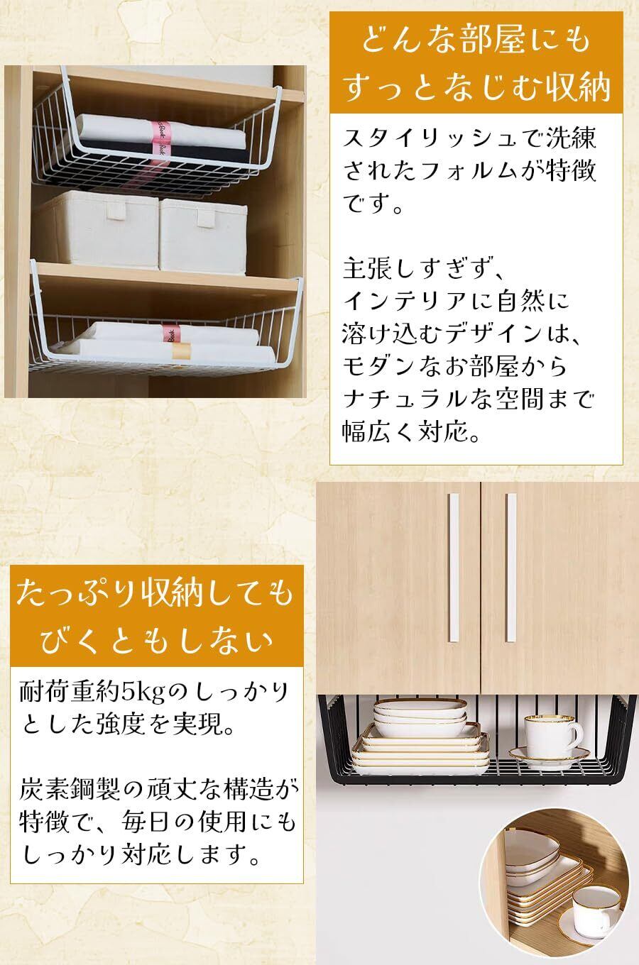 【省スペース】キッチン用品や衣類、日用品などさまざまな小物を効率的に収納でき、限られたスペースを有効活用できます。日常的なアイテムもすっきり整理できます。