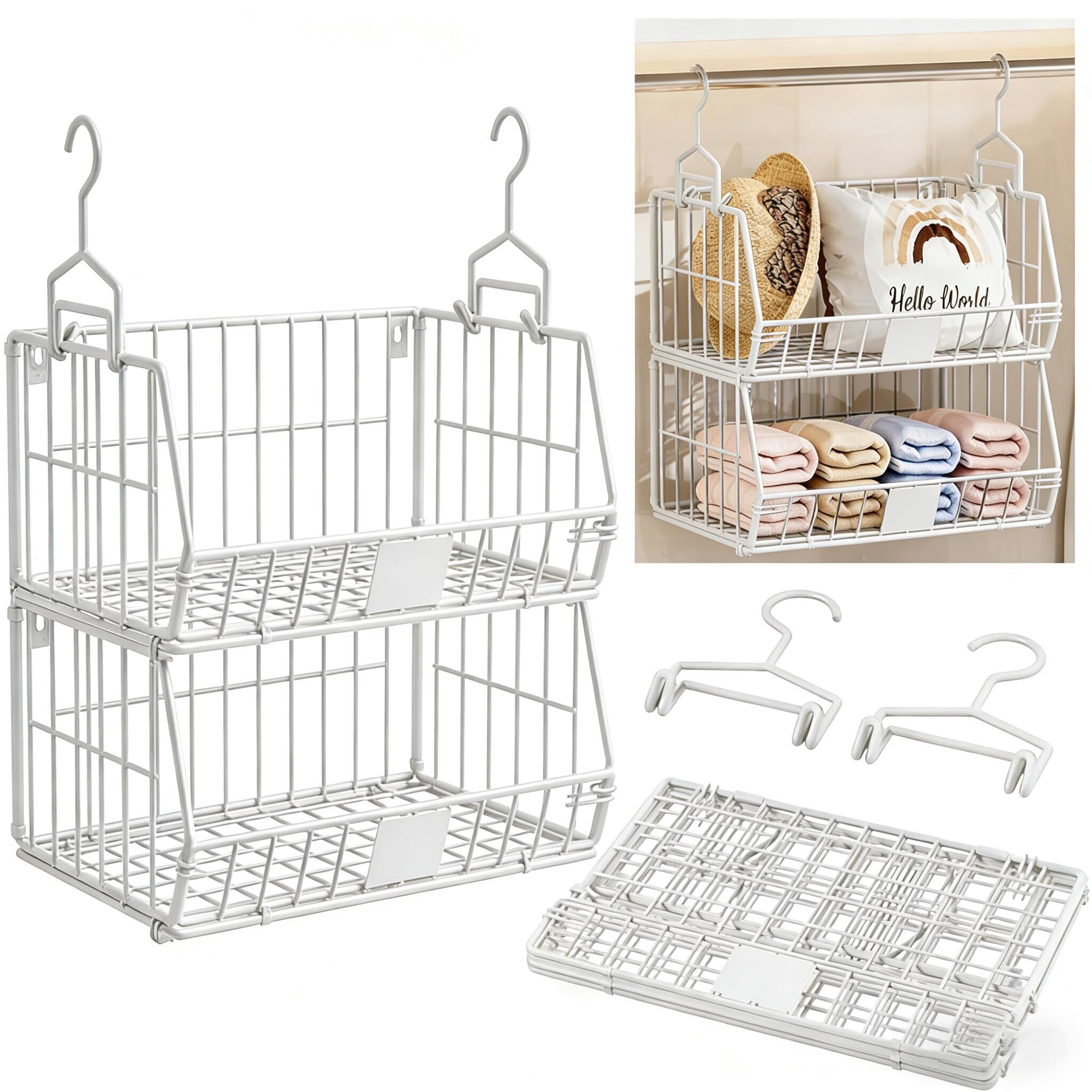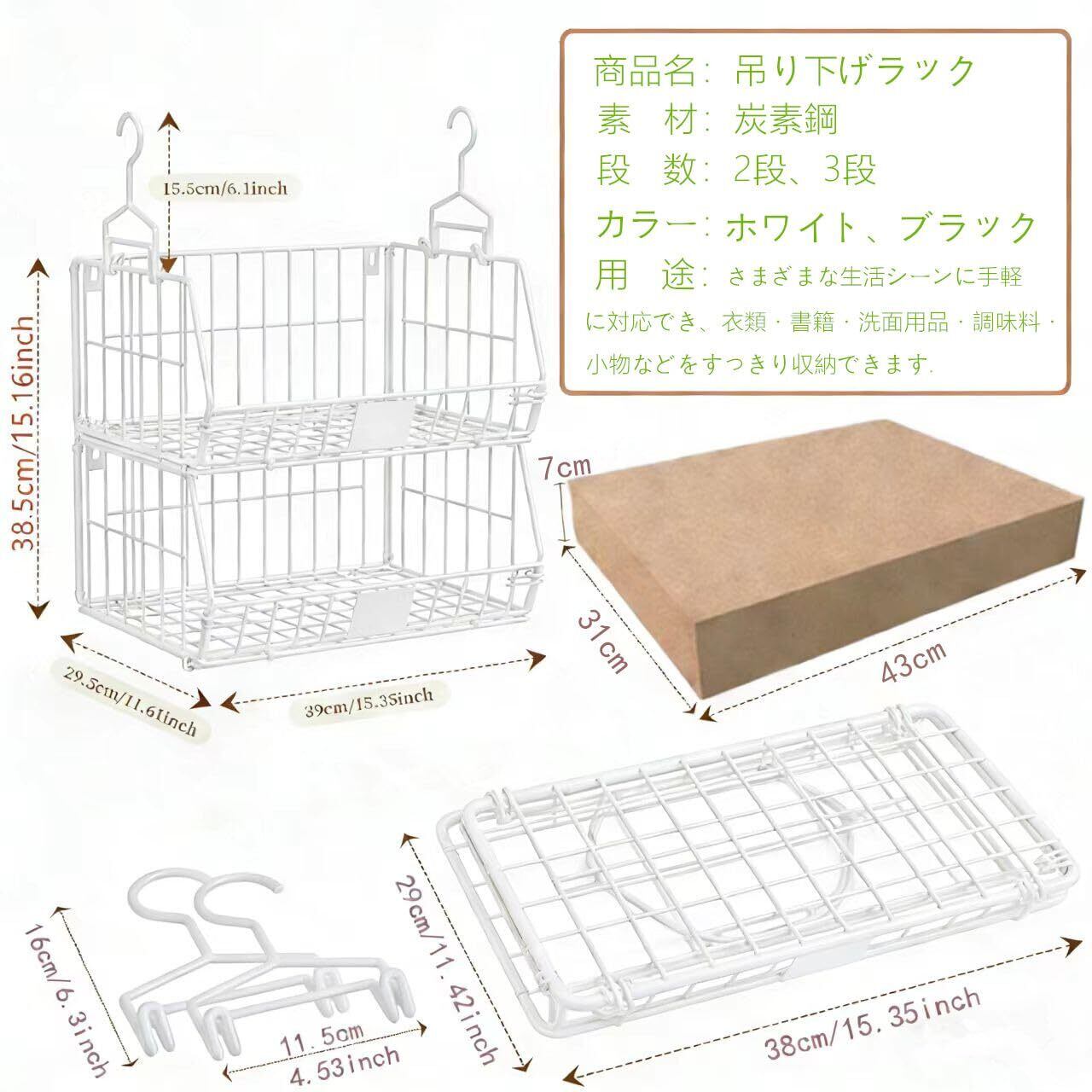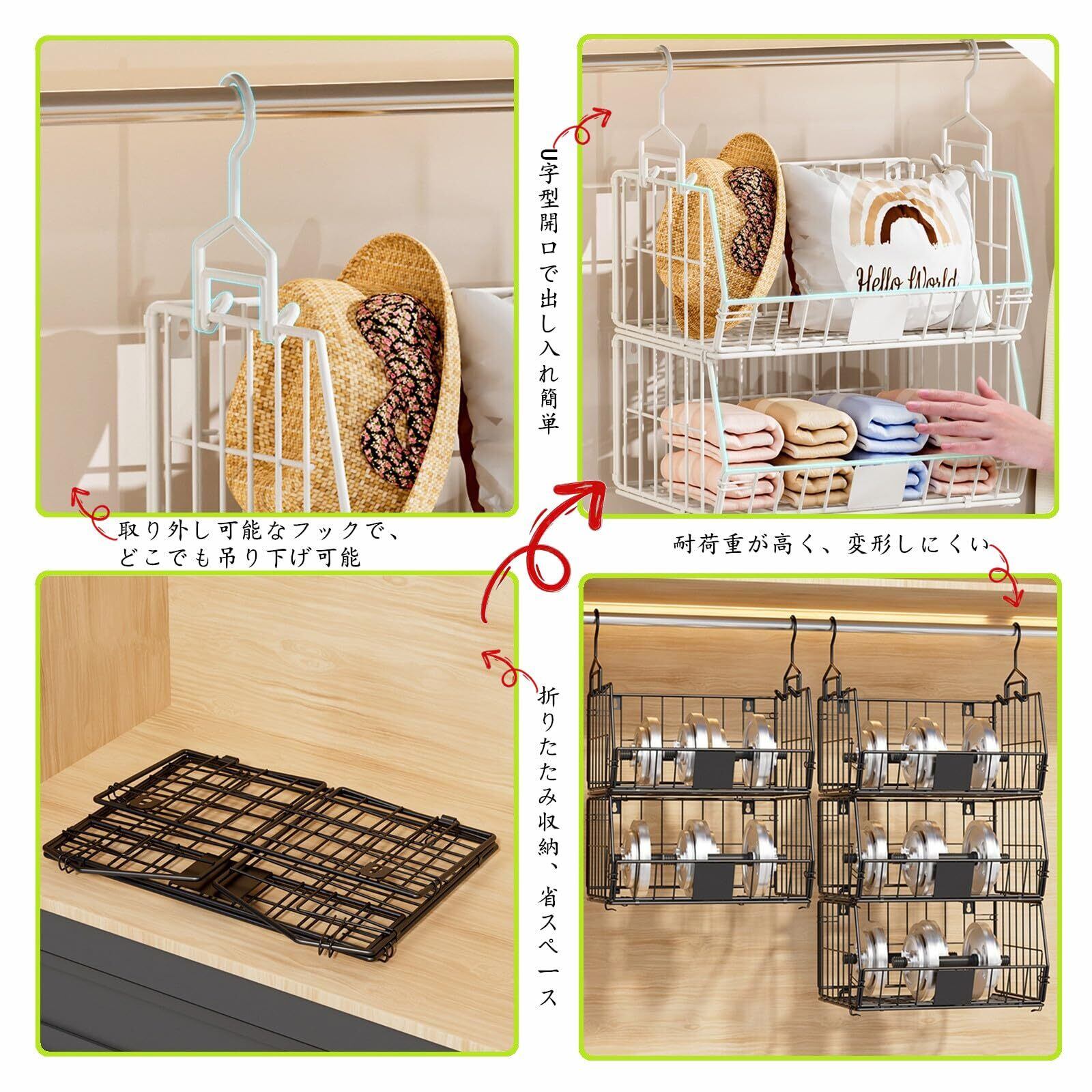 吊り下げラック つりさげ 収納 2段/3段 折りたたみ式 クローゼット 収納 吊り下げ 炭素鋼製 サビ防止 U字型開口 大容量 自由組み合わせ 安定構造 省スペース キッチン/バスルーム/トイレ用 収納用品 (ホワイト, 2段)