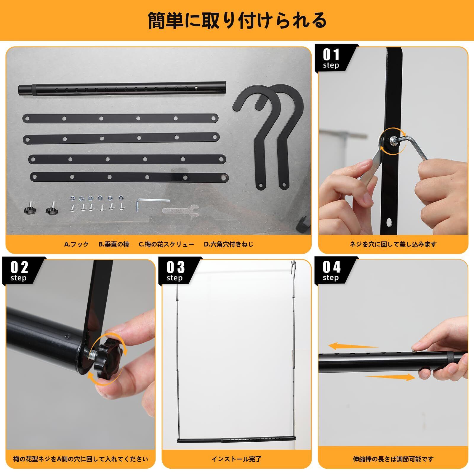 頑丈で耐久性がある-高品質な金属で作られた吊り下げハンガーは、最大約23kgまでしっかり耐荷重。表面は滑らかに仕上げてあるので、洋服を傷つけず、ハンガーラックとして安心してお使いいただけます