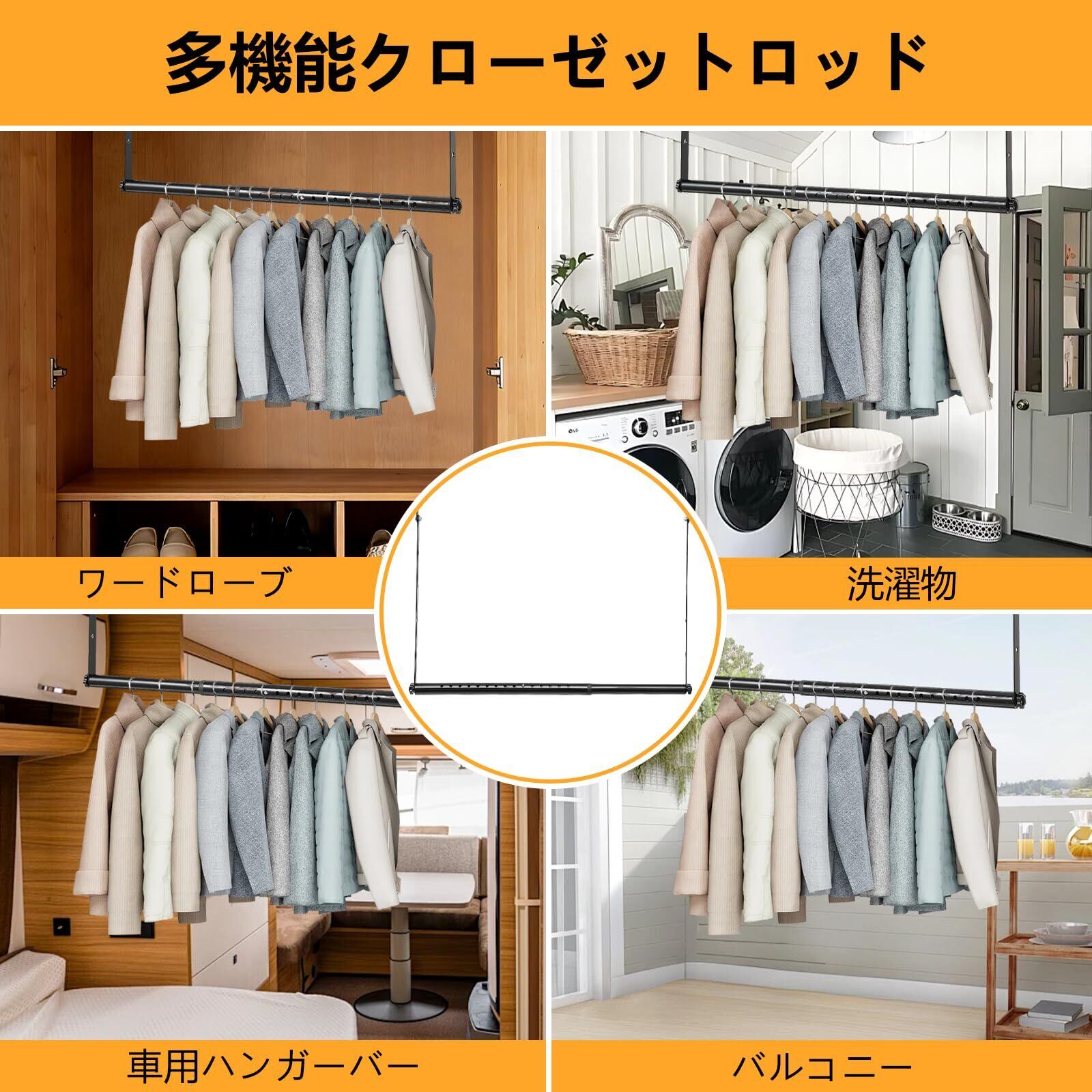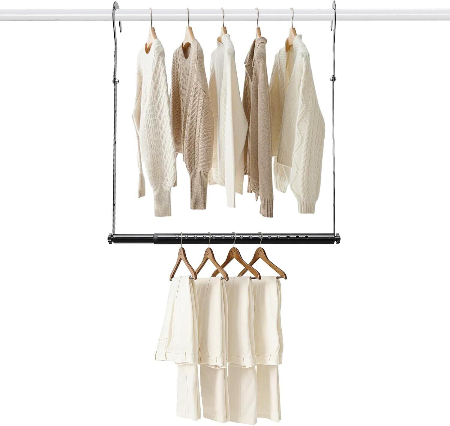 吊り下げハンガー 1パック黒ハンガーラック 28-96 cm 長さ調節可能収納力アップハンガー 43-72 cm幅調節可能2段ハンガー 省スペースハンガー 2段 頑丈で耐久性がある衣類収納アップハンガークローゼット天井用物干し竿