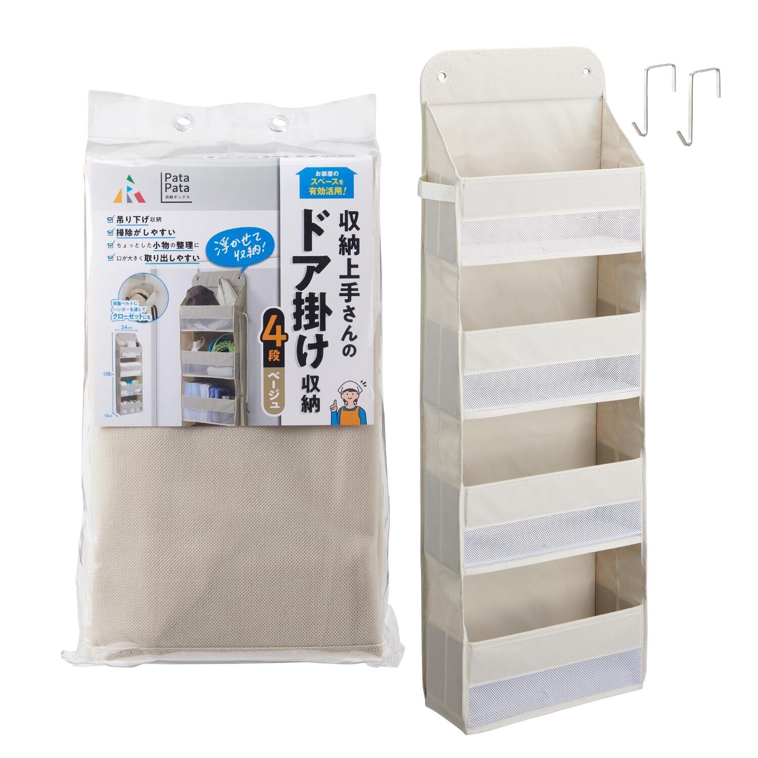 アール(R) PataPata 収納ボックス ドア掛け用 4段 ベージュ 幅34㎝×高さ58㎝×奥行14㎝ 吊下げ収納 浮かせる収納 ぬいぐるみ おもちゃ 帽子 散歩グッズ ドアフック JJ-032