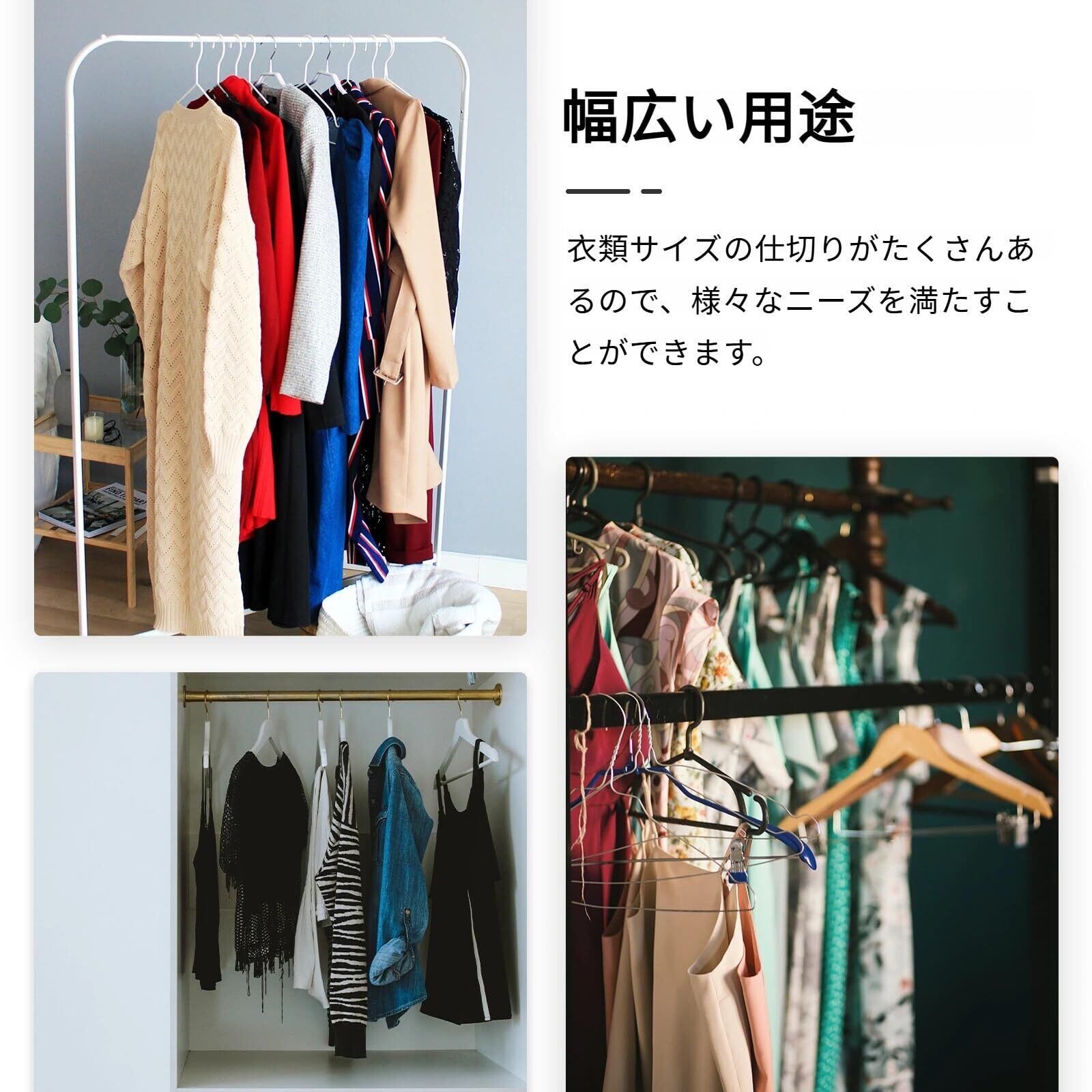 幅広い使用シーンに対応:服の整理整頓に最適で、衣類のサイズ別管理が簡単になります。家庭、店舗、展示会など多様な環境で活用でき、クローの見た目も整います。
