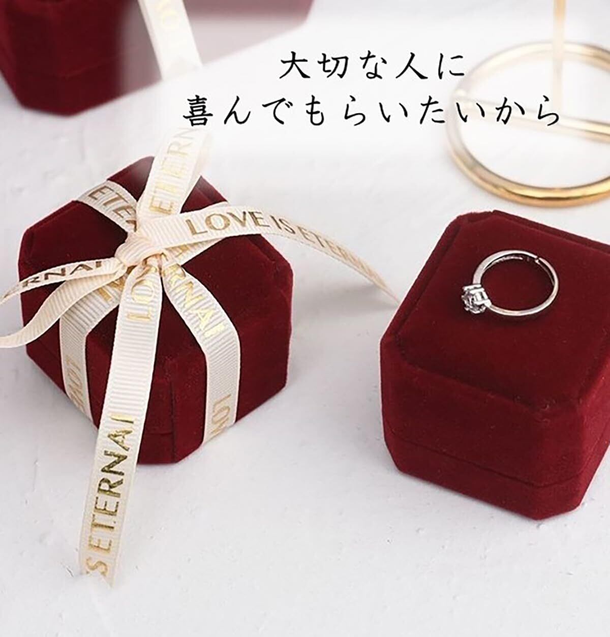 高級感のあるデザイン: ベルベット製で上品な雰囲気を醸し出し、プロポーズや記念日のギフトにぴったりです。