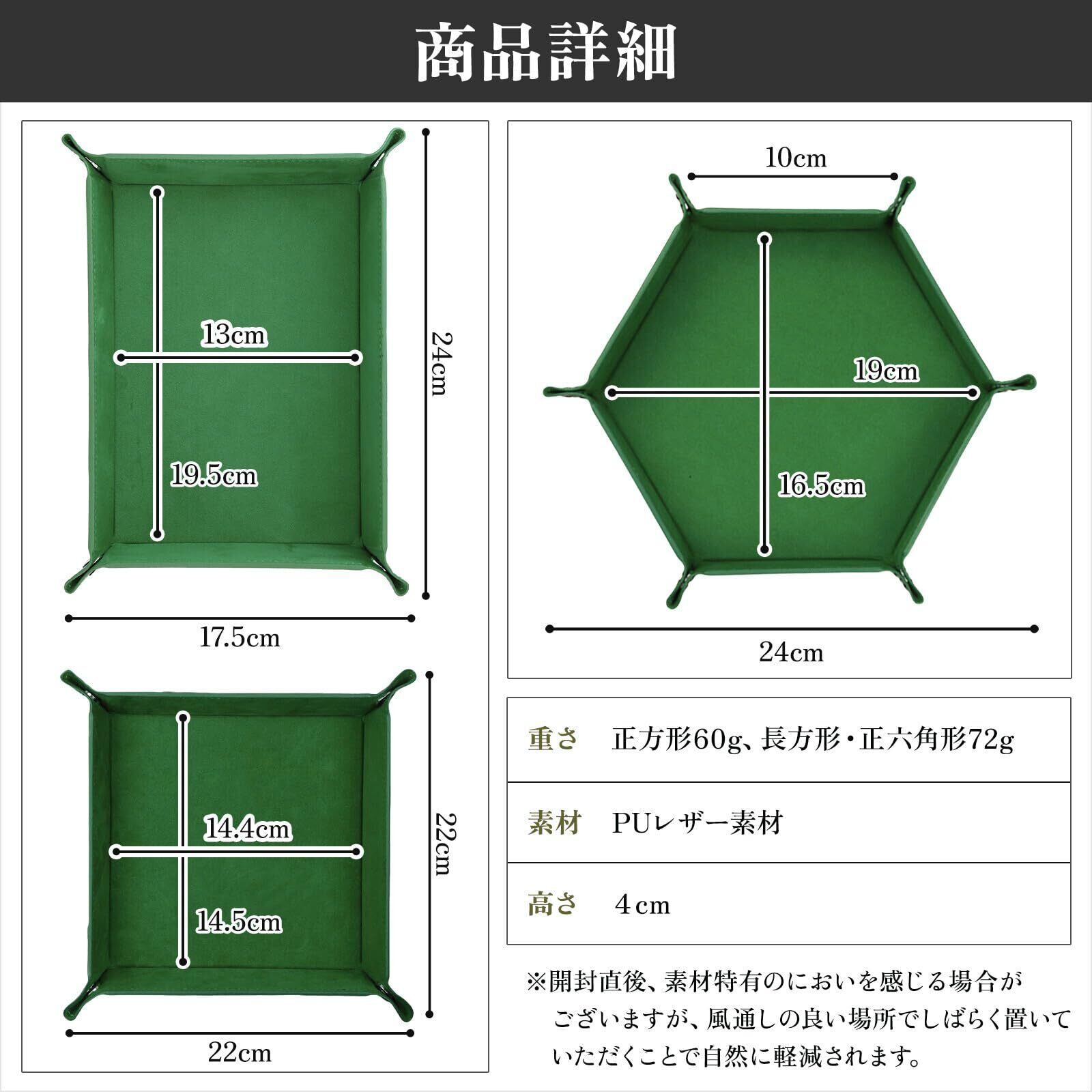 ターティス レザートレイ 小物入れ 卓上 おしゃれ 鍵置き スマホ メガネ アクセサリー 腕時計 リモコン 収納 折り畳み コイントレー (グリーン, 長方形)