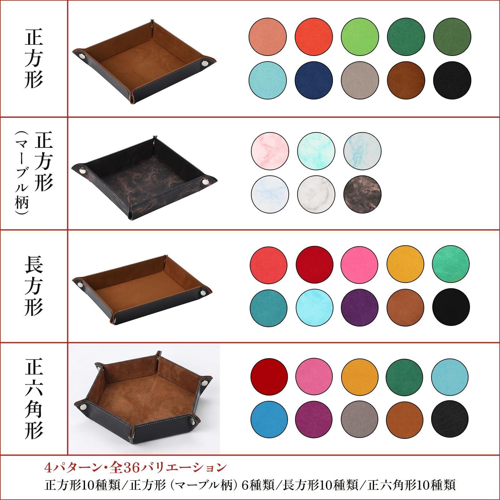 正方形・正方形(マーブル柄)・長方形・正六角形の4タイプ展開。色や形で使い分けができ、家族用やペア使い、色違い購入にも最適です。