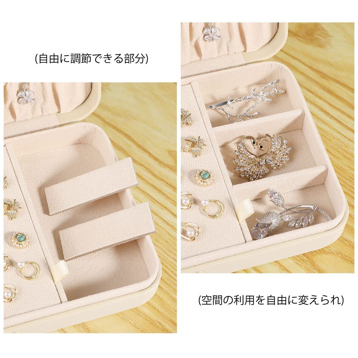 LANDICI ジュエリーボックス PUレザージュエリーケース ジュエリーボックス 指輪置きジュエリー収納ケース 携帯用 持ち運び 仕切り付き宝石箱 jewelry box organizer じゅえりーぼっくす ネックレス イヤリング ピアス ブレスレットなど小物入れアクセサリー ボックス 女性 女の子用 ベージュ