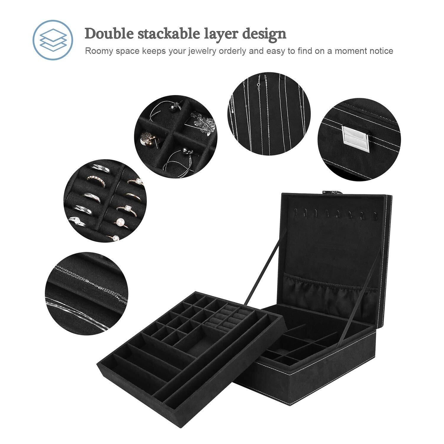 ProCase ジュエリーボックス ジュエリー収納 女性 2層 ジュエリー 収納ケース アクセサリー収納 ビーズ収納 オーガナイザー 分割 取り外し可 小物入れ 着脱式の仕切り付き -ブラック