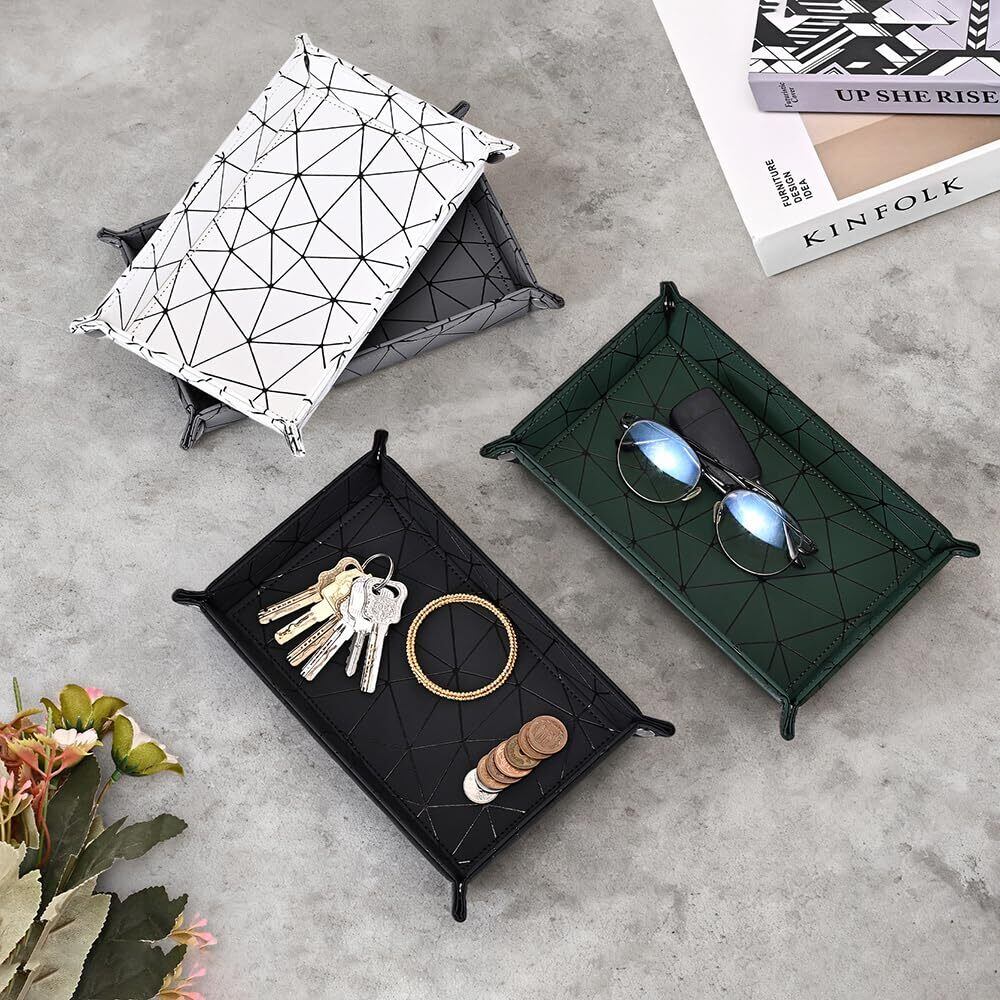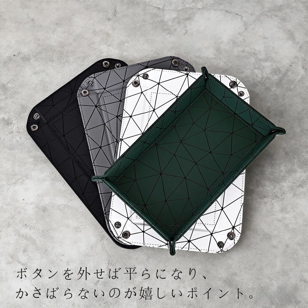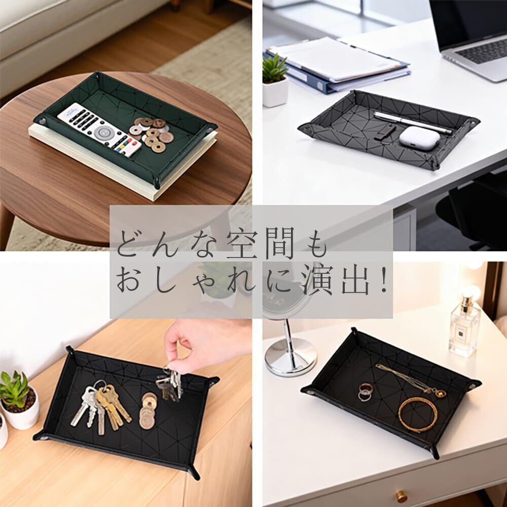 レザートレイ 高級本革風 アクセサリートレイ 4色展開 卓上 収納ボックス 折り畳み式 鍵 腕時計 スマホ メガネ置き リモコンラック 静音設計 インテリア (ダイヤ柄ブラック)