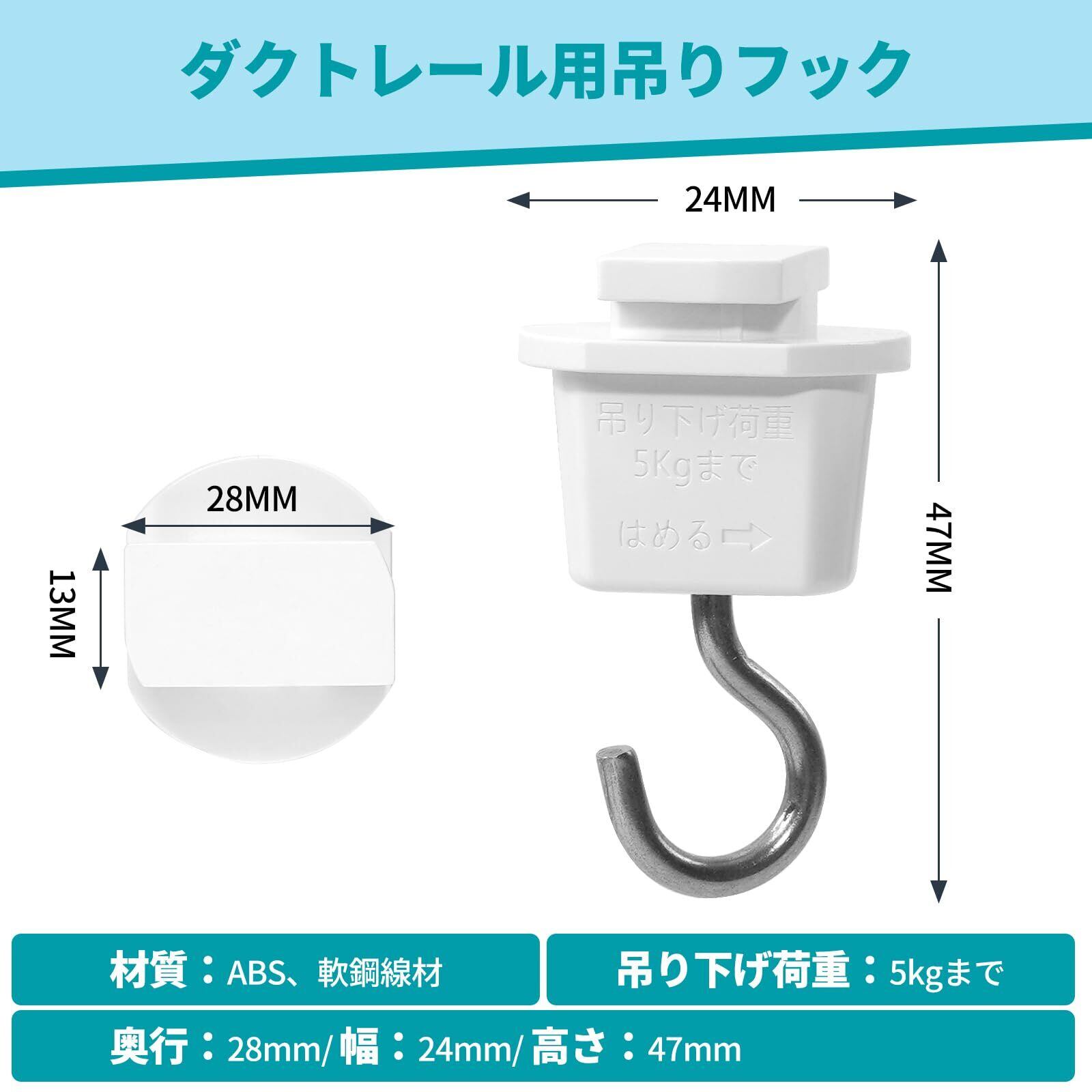 Aiwode|ダクトレール用吊りフック|照明器具配線 ショップライン|ライティングレール用|簡単取付 工事不要|ホワイト|4個セット
