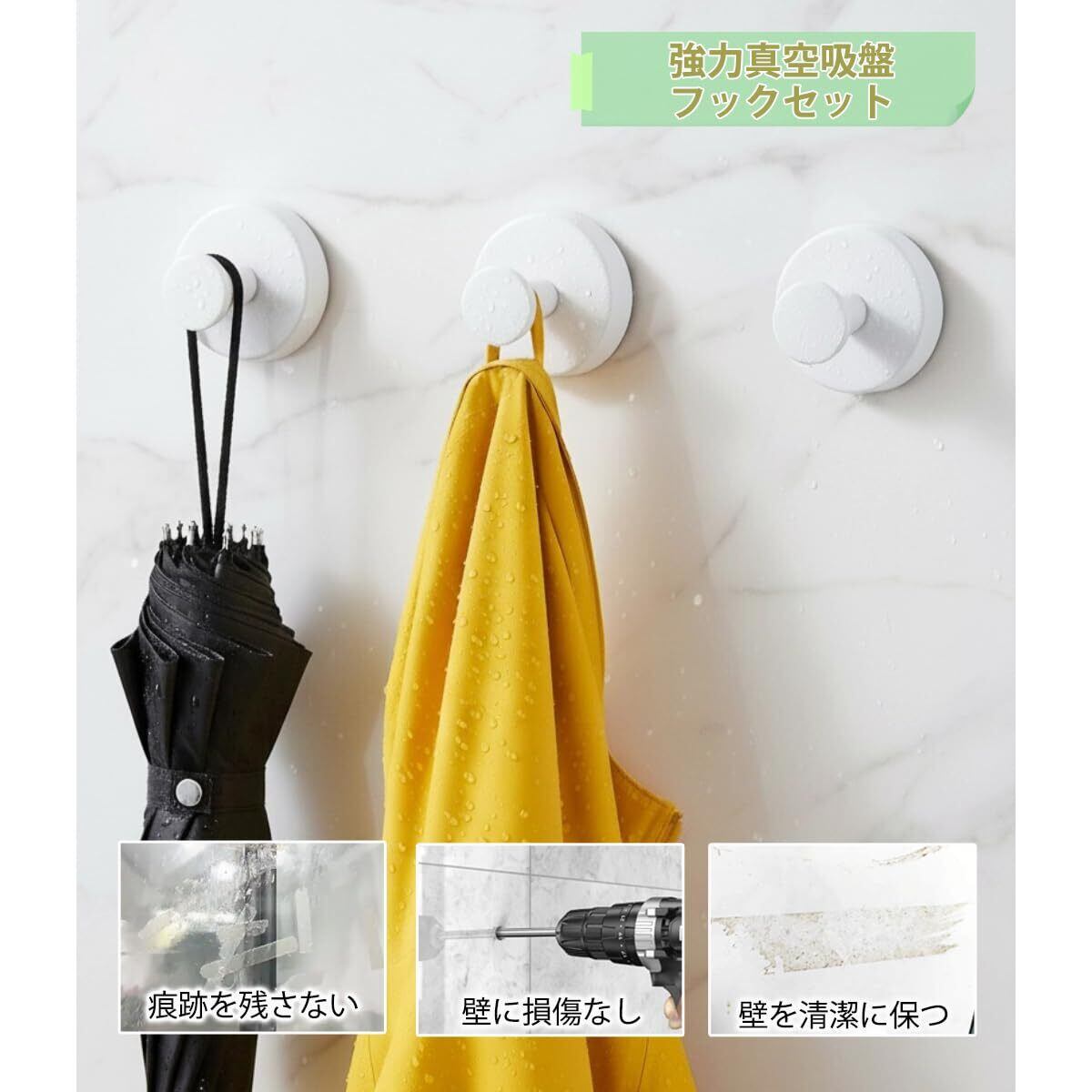 【強力吸盤フック】吸盤フックは、壁を傷つけずにスペースを有効活用できる便利グッズです。必要な場所に押し付けるだけでOKで,、時間が経っても滑り落ちる心配はありません。