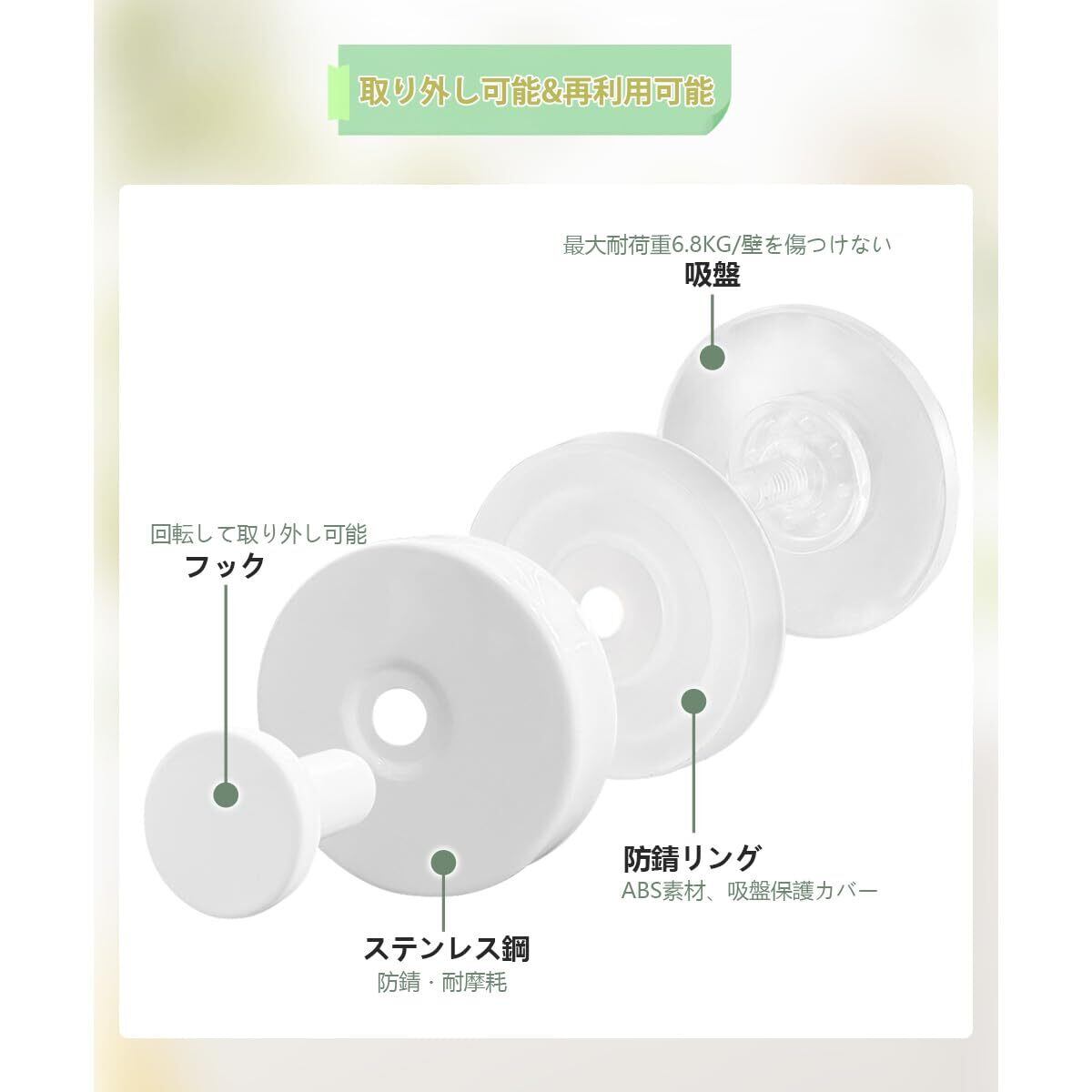 吸盤フック 強力 壁掛けフック 浴室用 2個入り 耐荷重6.8kg 繰り返し使用可能 ステンレス 壁傷つけない お風呂 キッチン 入り口 (ホワイト)