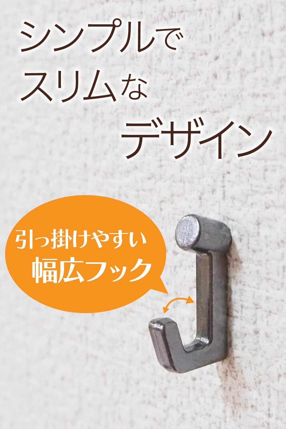【取り付け方法】 石膏ボード壁なら指で押すだけでOK。斜めに刺さる設計により、しっかりと固定されます。針の長さ15mmで、壁にしっかりと固定できるため安心です。工具不要で簡単に取り付けられ、取り外しも容易。コンパクトながら機能的な設計です。
