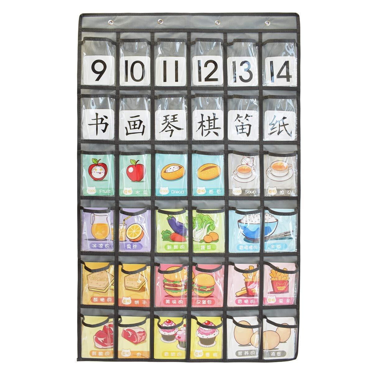 ウォール ポケット カレンダーポケット ポリ塩化ビニル クリア 壁掛け 透明 吊り下げ クローゼット 小物 収納袋 フック付き 2サイズ 12/36 ポケット (グレー,36格)