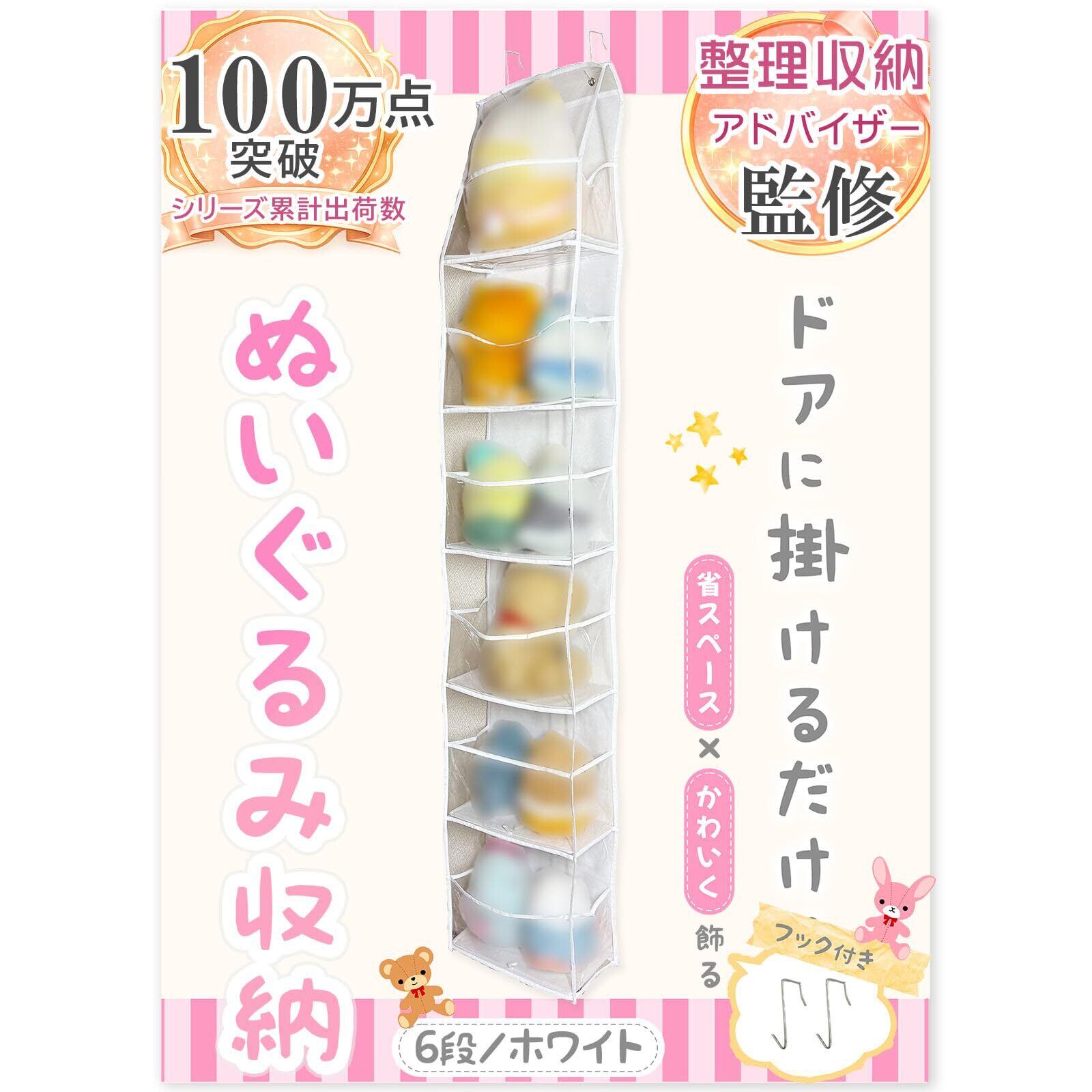 ぬいぐるみ収納 吊り下げ 壁掛け ドア掛け 見せる収納 ウォールポケット ぬいタワー 省スペース 整理整頓 6段/白