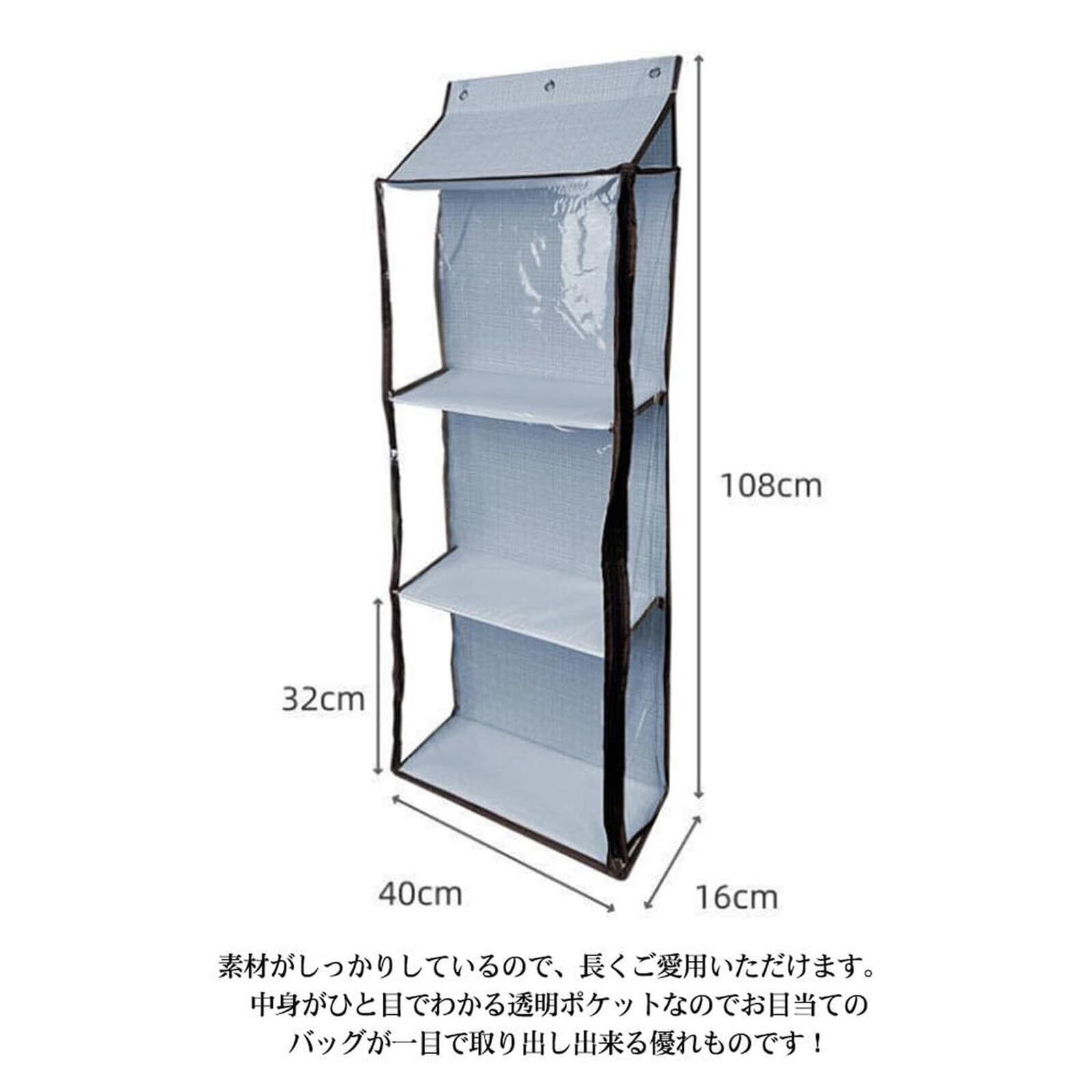 素材がしっかりしているので、長くご愛用いただけます。 中身がひと目でわかる透明ポケットなのでお目当てのバッグが一目で取り出し出来る優れものです!サイズ:約40*16*108cm。