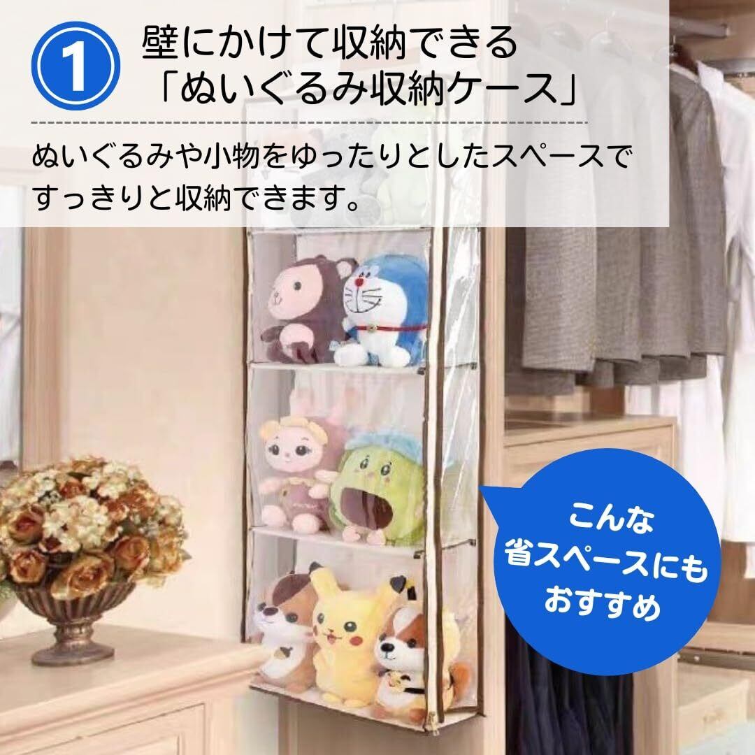 【常に綺麗な状態でぬいぐるみを保管】クリアカバーのため収納したぬいぐるみを常に見ることができるうえ、綺麗な状態を保つことができます。
