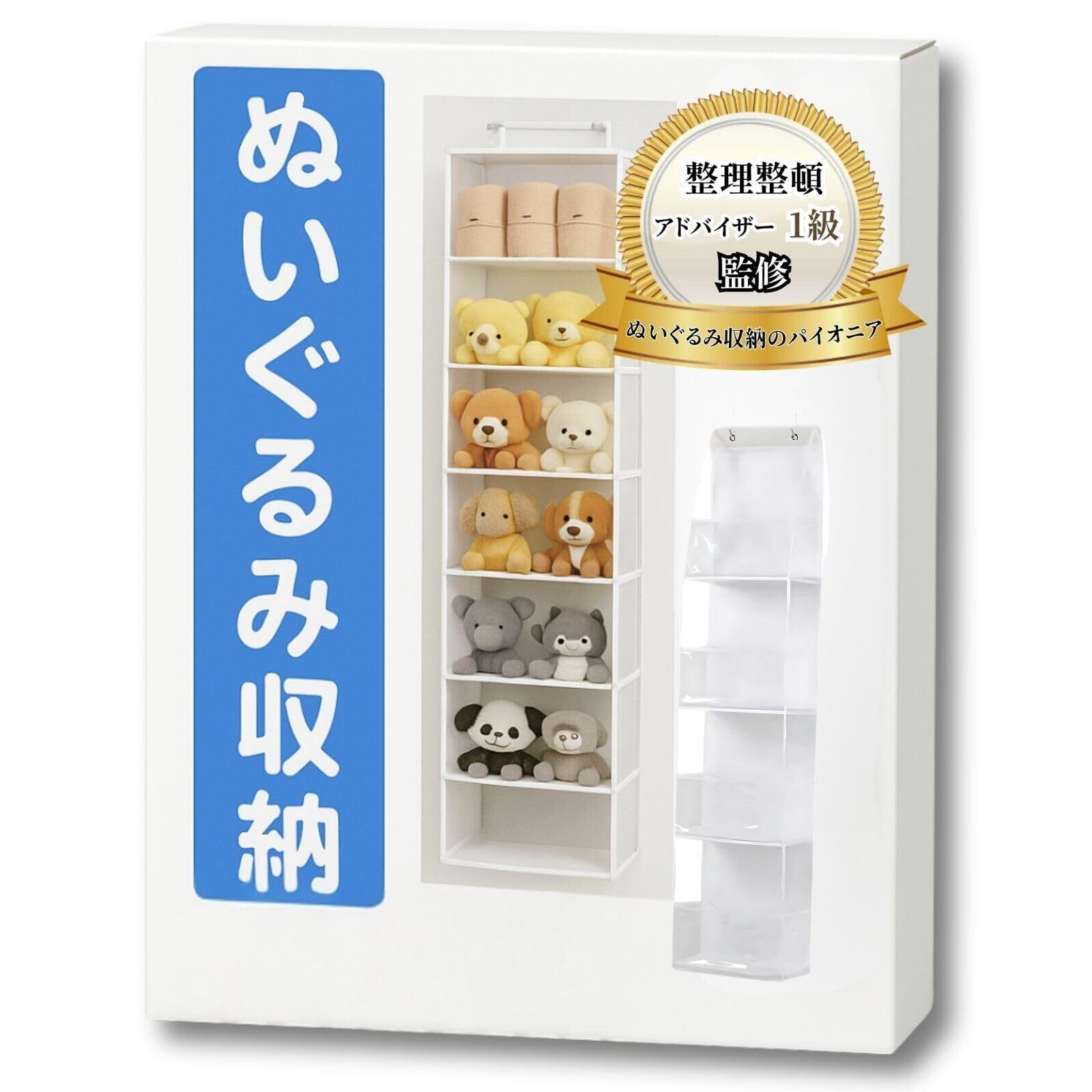 ぬいぐるみ 収納〈整理収納アドバイザー1級監修 〉大容量 ウォールポケット ぬいぐるみケース 扉掛け ドア掛 壁掛け(白, 4段)