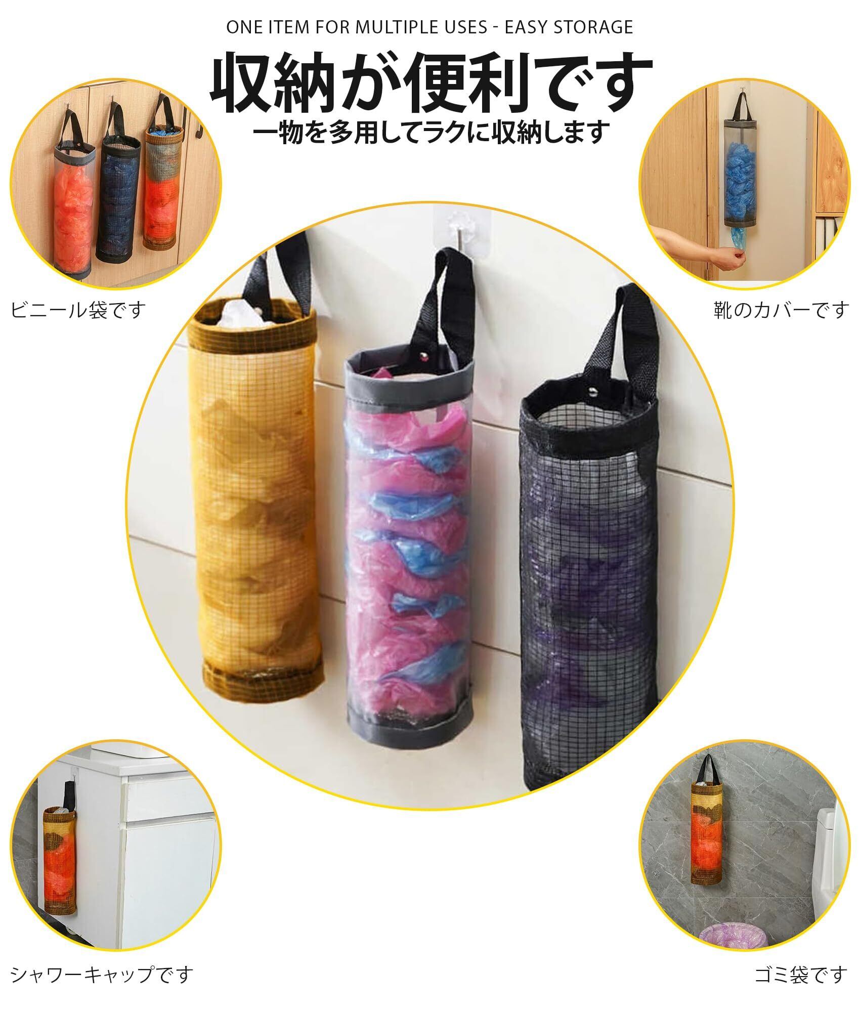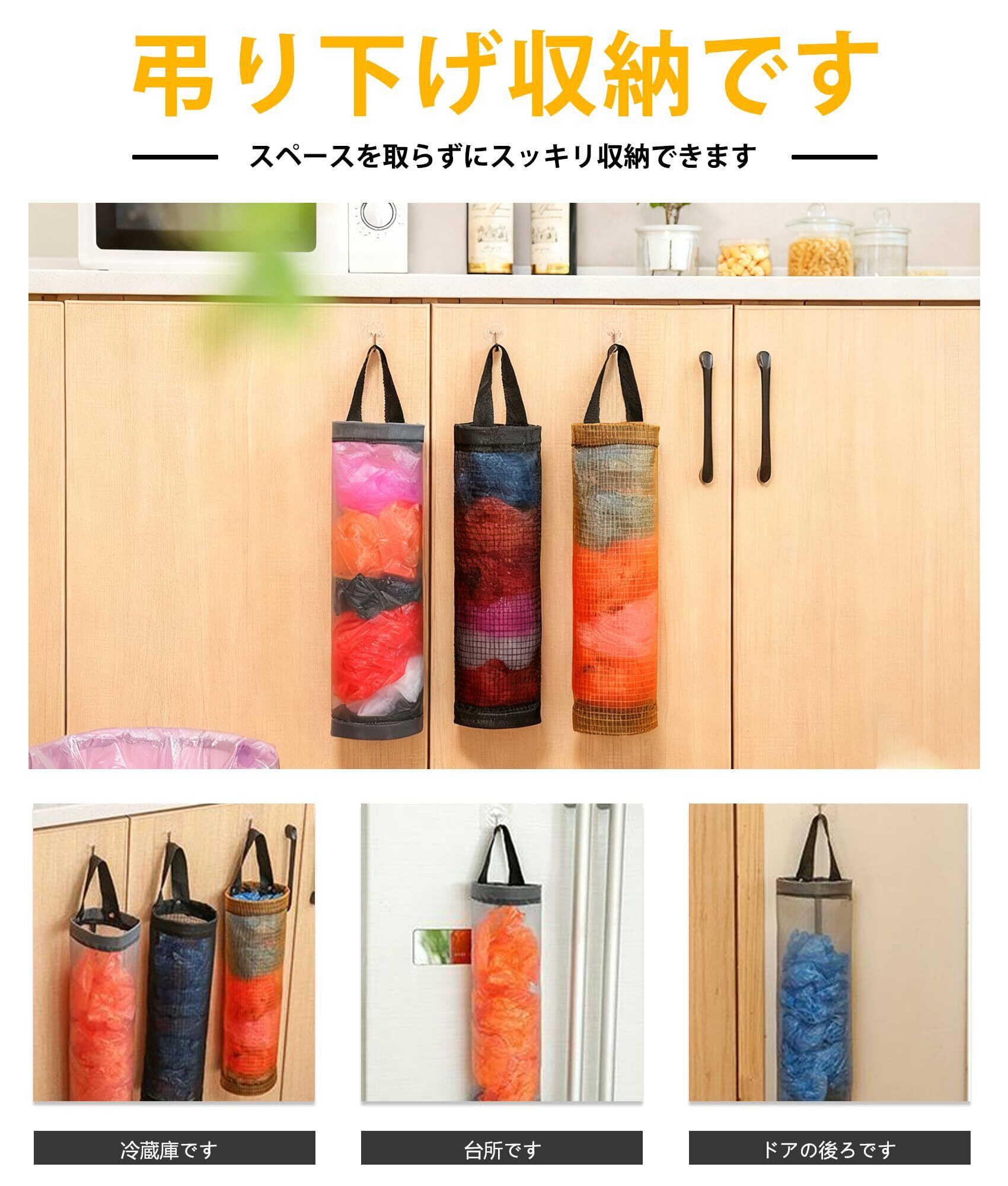 レジ袋ストッカー ゴミ袋収納 キッチン用 大容量 省スペース浴室 取り出せ便利 壁掛け ストック キッチン トイレ 洗面所 リビング 靴箱 (3個入)