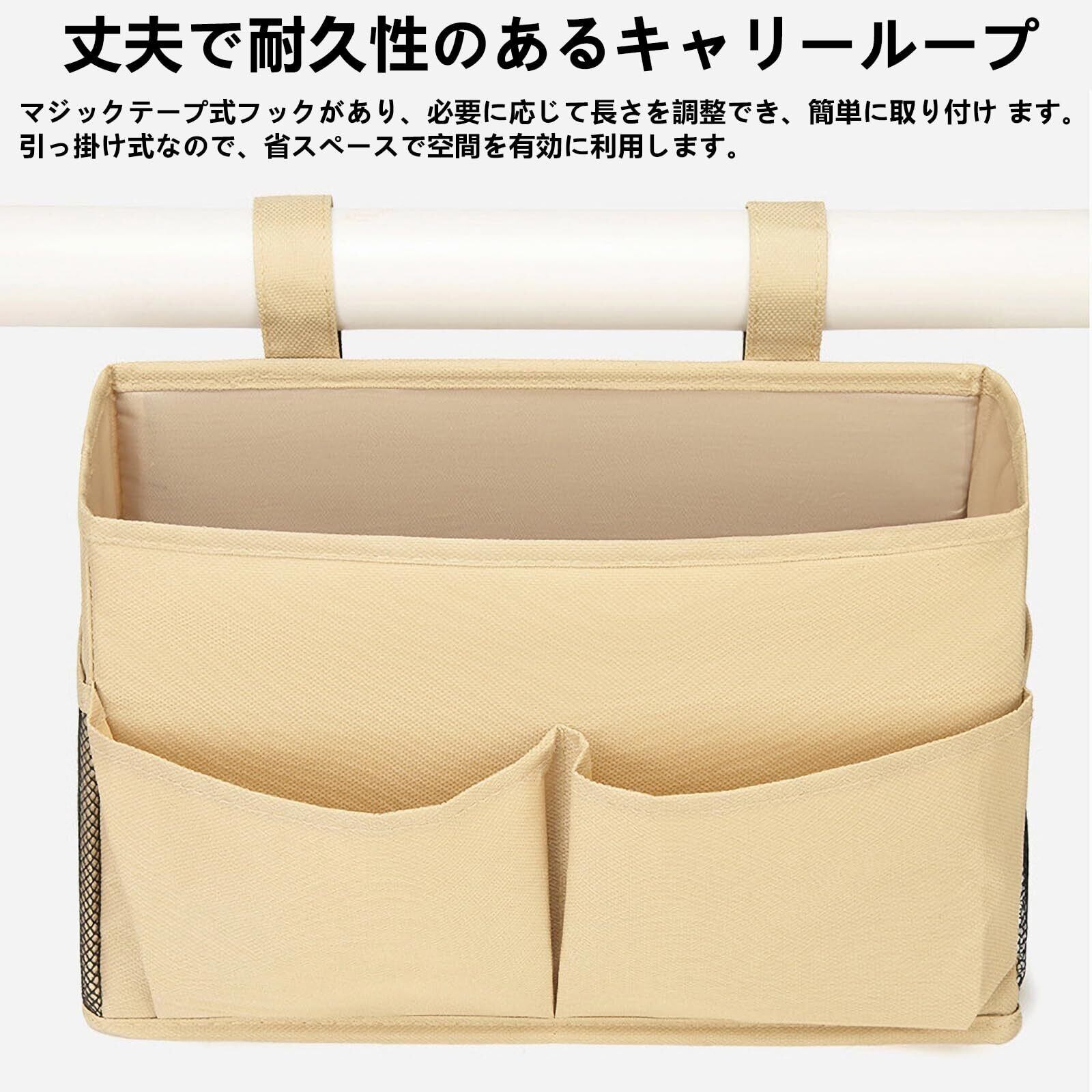 ベッドサイド 収納ポケット 大容量 多機能収納かご 吊り下げ収納袋 掛け袋 小物収納ボックス 収納かご マルチポケットオーガナイザー ベルクロ 雑貨収納 雑誌書類収納 リモコン収納 家庭便利グッズ 学生寮雑貨収納 (グレー)