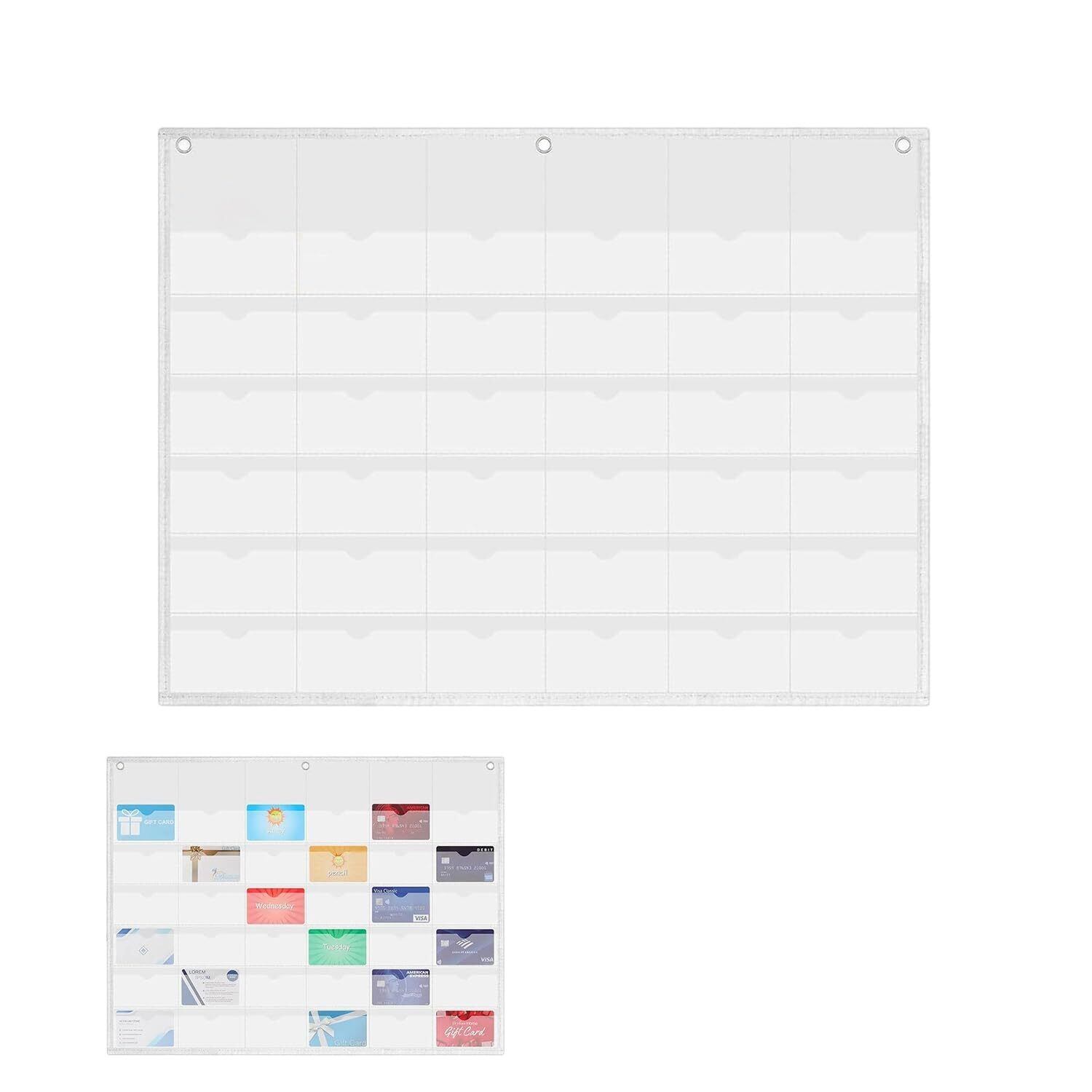 ウォールポケット 壁掛け 吊り下げ 収納ポケット 透明 36ポケット カードホルダー カードの保護 缶バッジ ポストカード 写真 小物入れ 収納 省スペース 32.2*23.8インチ