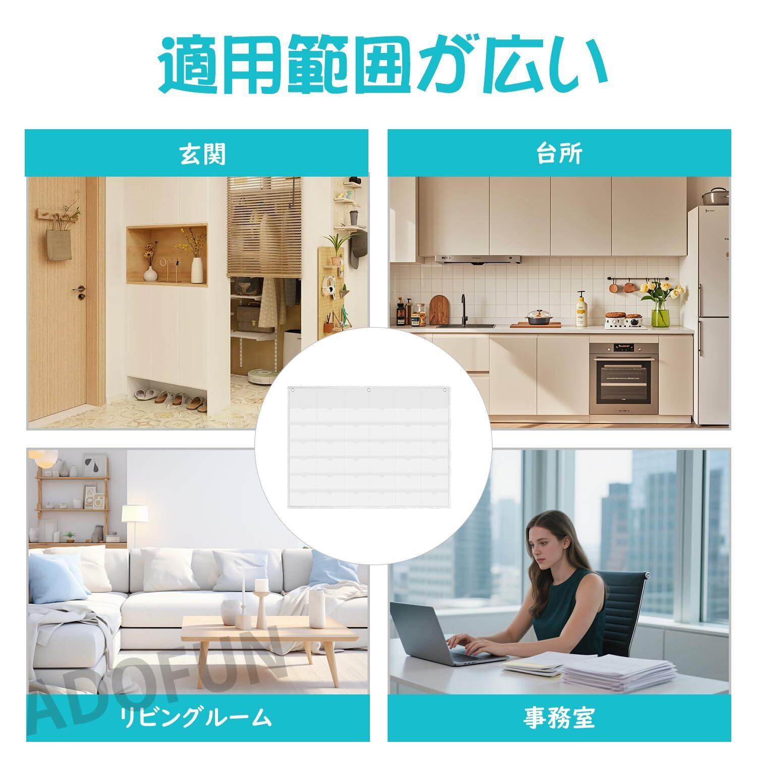 【マルチユース対応】壁掛け収納ポケットは玄関戸後ろ、クローゼット、オフィス壁面など多様なシーンに対応。バッジ、写真、カード、小物類をスムーズに収納し、散らかりを一掃してお部屋をすっきり保てます。
