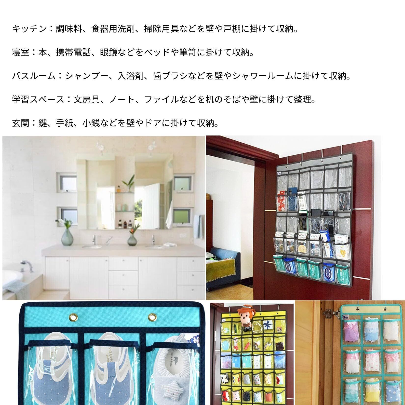 【24ポケットで最も収納量が多い!】家族全員で利用でき、たくさんのスペースを節約できます。製品サイズは150*55 cmで、99.9%の標準ドアに適用可能です。