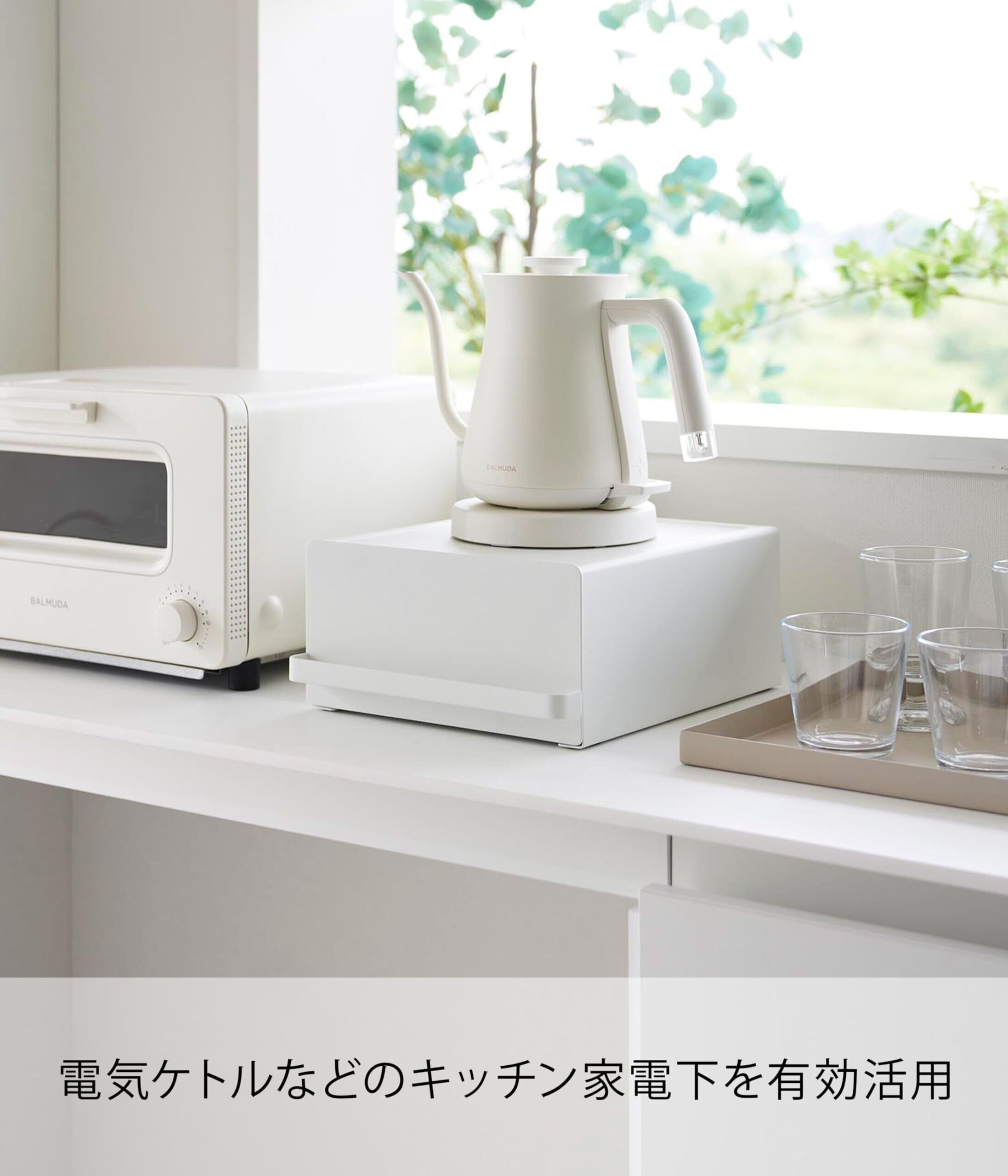 電気ケトルやコーヒーメーカーの下を有効活用!引き出し付きなので小物も収納できるキッチン家電下ラック。