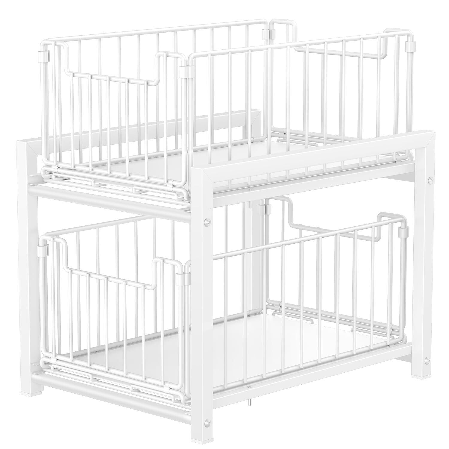 TKUIN シンク下ラック 収納 スライド 幅27×奥行37×高さ38.5cm 大容量 引き出し 2段 キッチン収納 洗面台下 収納ラック キッチンラック 台所 整理収納 キッチンストッカー スチール製丈夫 シンク下収納ラック (White)