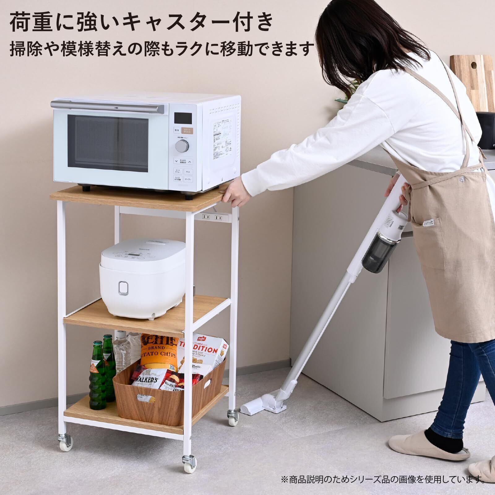 【レンジ台にオススメ】幅57.5cmで30Lのオーブンレンジも設置しやすいキッチンラックです(30Lは目安ですので、お使いのレンジのサイズをご確認ください)。高さ85cmなので一般的なシンクと同じ高さで作業や配膳の補助台としても便利です。