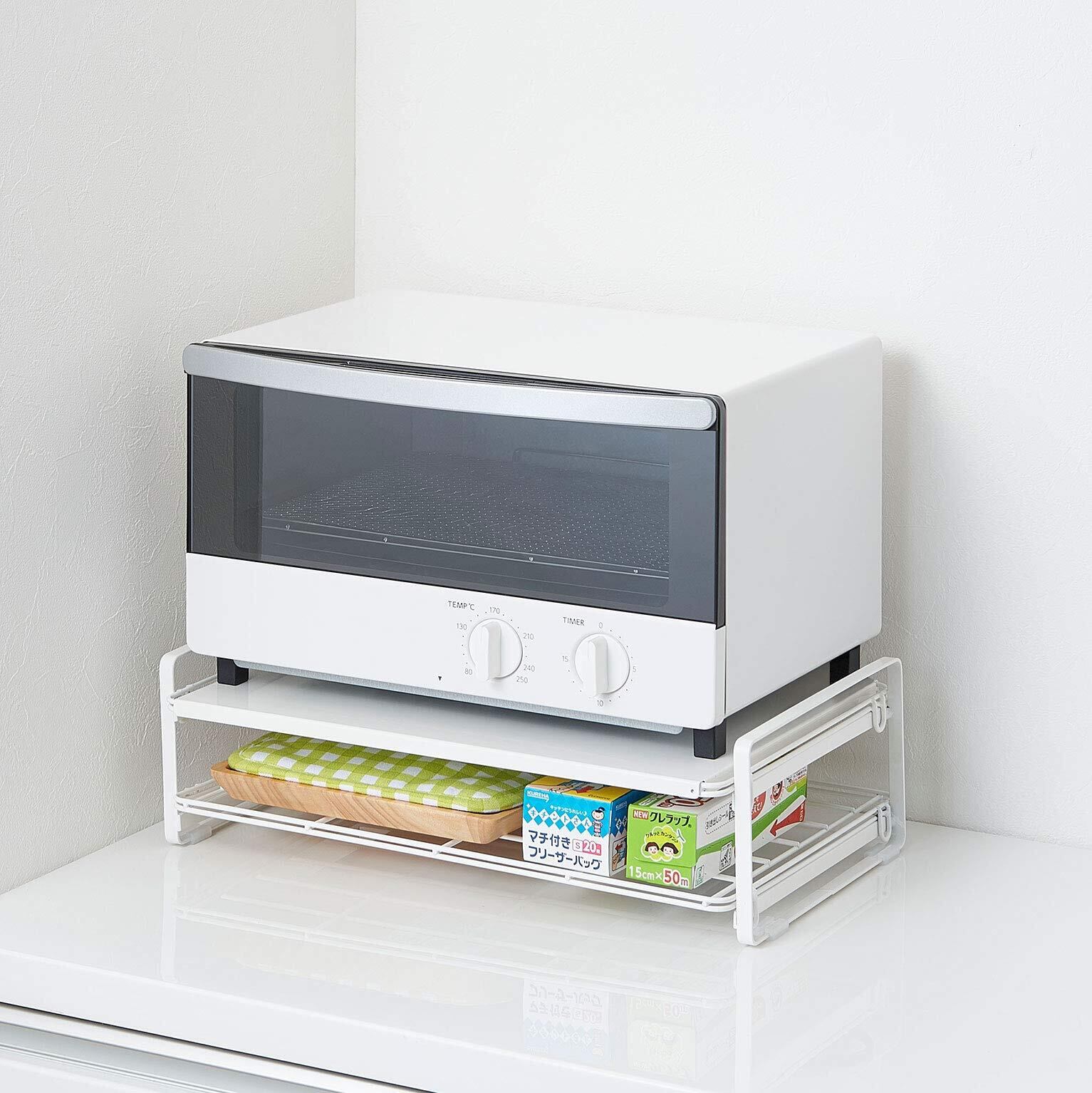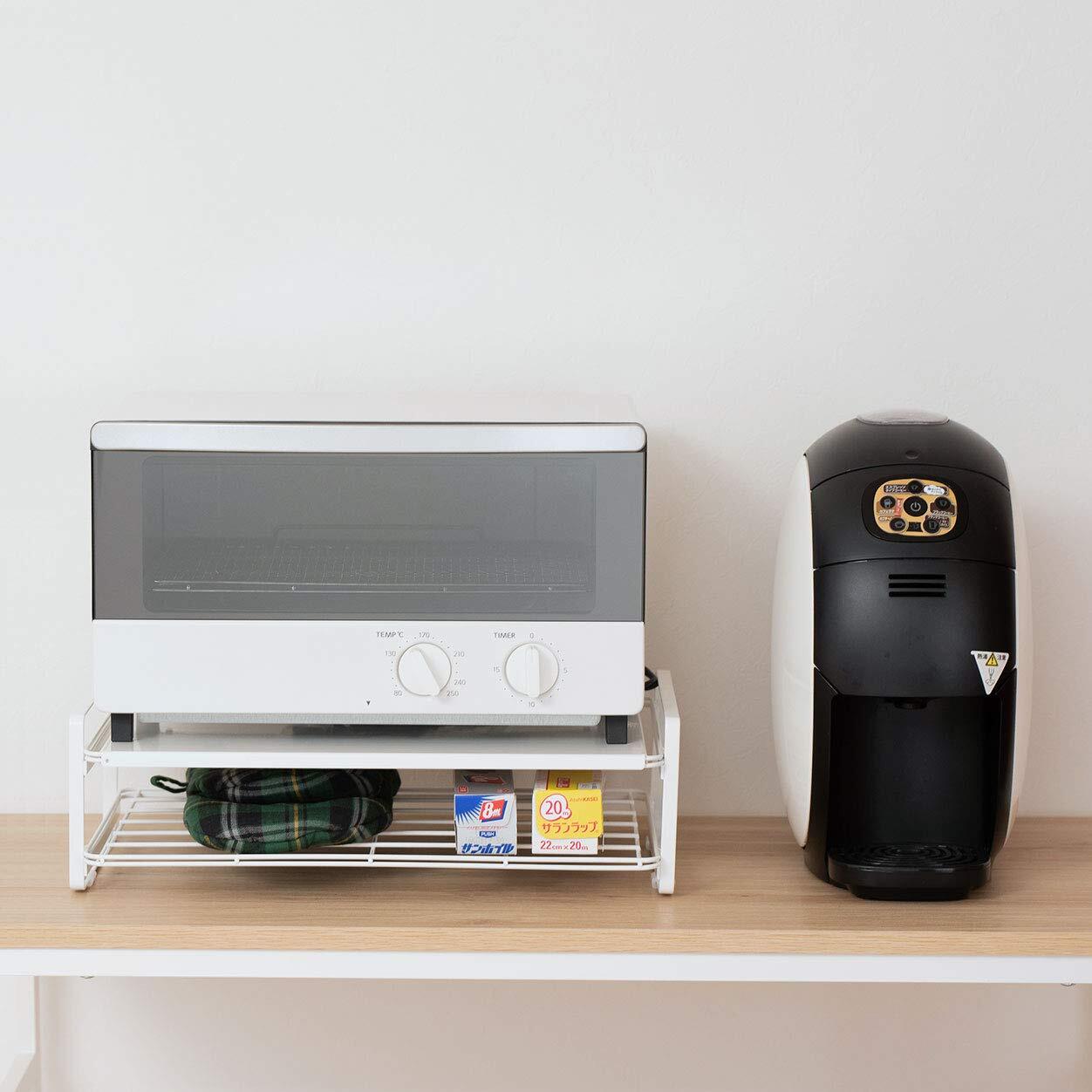 トースターまわりの小物をすっきり収納できます。キッチンカウンターやレンジの上などで使えます。