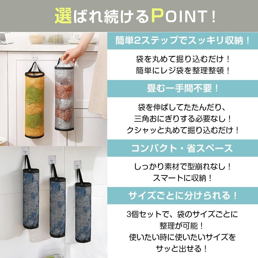 【3個セットでお得!】レジ袋だけでなく、キッチン・洗面所・玄関、お風呂のおもちゃなど、色んな場所で使用可能!家中スッキリ