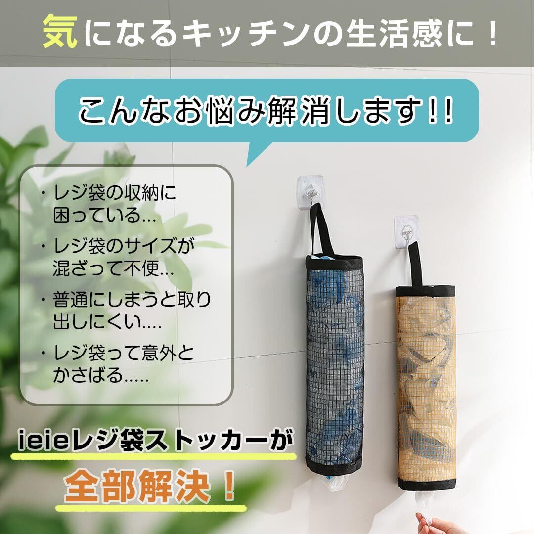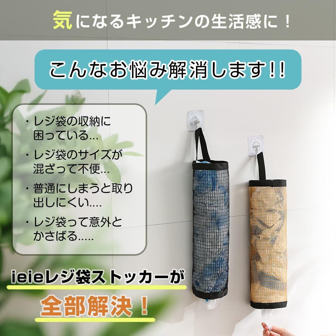 レジ袋ストッカー(ブラック)3個セット レジ袋 ゴミ袋ストッカー ビニール袋 ポリ袋 スーパー袋 ストック キッチン トイレ 洗面所 リビング 収納ホルダー 引っ掛け メッシュ 吊り下げ収納